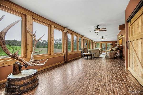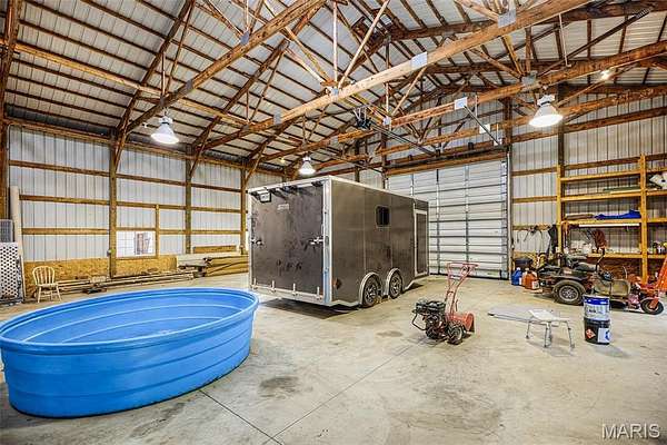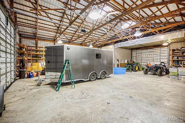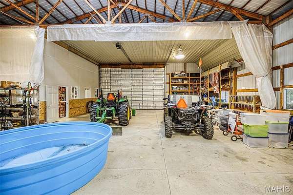 Looking for a private Oasis? This 4 bedroom, 4 full bath is nestled on 40+ acres. Feel yourself exhale as you enter along the wooded driveway that opens to lush fields. Roughly half of the property is wooded, plenty to explore hiking or on your UTV. The other half of the property is open fields where deer and turkey roam. This home offers plenty of space to spread out including a sunroom perfect for viewing wildlife. The large kitchen includes two dishwashers, two refrigerators and a large island perfect for baking and hosting guests. In the great room the wood burning fireplace will warm you through the winter. Deck doors open to an expansive deck that wraps two sides of the home, perfect for an afternoon nap or celebrations. Two bedrooms are on the main level. Upstairs both bedrooms are en-suite. The second floor also includes open space perfect for an office, workout room or large closet. Let it flex your needs. The finished lower level is perfect for entertaining including game day parties and features a kitchenette with a side by side refrigerator and dishwasher. There's plenty of storage throughout the home. Speaking of storage, the attached 3-car garage is oversized allowing for plenty of circulation around your vehicles and ample storage room in front. Oversized truck? No problem. The 50x70 shop has a concrete floor, 14'' service doors and includes 200 amp service with two 50 amp plugs and a 30 amp plug. There's plenty of space for your "toys" and gear. A wood burning stove in the office will take the chill out of those cold fall and winter days.
