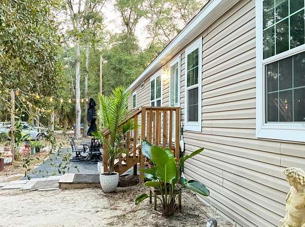 Significant Price Improvement- Seller motivated! Escape to peaceful country living in beautiful Bell, Florida! Situated on 5.48 private acres, this unique property offers a rare blend of space, flexibility, and opportunity-just 5 minutes from some of North Florida's most sought-after natural attractions. Along with a beautiful 2024 custom-built manufactured home, this unique estate includes three fully finished, climate-controlled buildings, thoughtfully placed away from the main home for privacy and comfort. Perfect for guest stays, private offices, creative studios, or Airbnb income, these versatile spaces are fully insulated, climate controlled, and connected to its own electric and water. One building even features its own full bathroom, washer/dryer, and an RV hookup nearby, offering endless flexibility for hosting or generating income. The nearly new 1,586 sq ft home welcomes you with an airy open floor plan, vaulted ceilings, and soft natural light throughout. The spacious island kitchen is the heart of the home, complete with stainless steel appliances, a stainless farm sink, breakfast bar, and abundant custom cabinetry and it's perfect for gatherings, cooking, or simply enjoying slow mornings at home. The primary suite provides a calming escape with a walk-in closet, soaking tub, and a large walk-in shower with dual showerheads. Two additional bedrooms offer comfort for family or guests with walk in closets. Home has exceptional storage! Outdoors, the property is ready for a variety of lifestyles, with 1.5 to 2 acres of fenced pasture with water, a chicken coop with electric and water, a large storage container, two wells, two septic systems, electric underground dog fence and multiple electric meters already in place. A poured concrete slab near the home offers a great spot for a future workshop, storage building, or additional structure and many water spigots throughout the property. Nestled at the end of a quiet country road and bordering open farmland, the setting is tranquil, private, and incredibly inviting. You can feel the peacefulness the moment you pull in. Located just minutes from the Suwannee River, public boat ramps, and some of the most beautiful natural springs in the world, this property offers the perfect balance of peaceful country living and outdoor adventure.