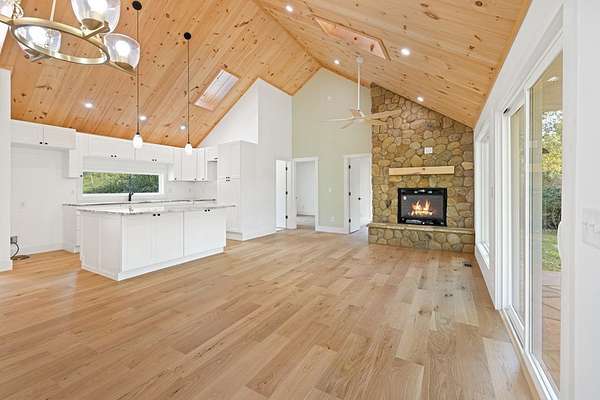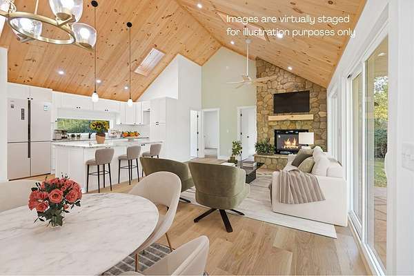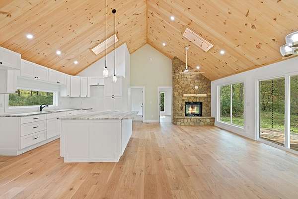 Welcome to this exceptional Brasstown Creekfront home in beautiful Warne, NC. Completely renovated in 2025. No expense sparred on this renovation. The only thing remaining from the original structure is the foundation. The home boasts 3 bedrooms, 2 full baths set on 1.58 level, unrestricted acres with 200+ feet of wide, deep creek frontage beside a private pond with a dock and fountain. This rare property delivers the perfect mountain setting. The home has been fully remodeled to today's modern standards with 16-foot vaulted tongue-and-groove ceilings, large picture windows, granite and quartz countertops, LVP flooring, chic lighting and fixtures, and a stone fireplace with gas logs. Designed for both entertaining and everyday living, the open kitchen connects to the dining area and living room and showcases a 4x6 granite island, white shaker cabinets, and a sunlit picture window over the farmhouse sink. The primary suite features a walk-through wardrobe, an oversized designer tile-and-glass shower, and a dual sink vanity. Two additional bedrooms share a guest bath with similar high-end finishes. Enjoy year-round outdoor living on the beautiful flagstone porches, ideal for relaxation and entertainment with the built-in gas line. The flat, usable yard, flowing Brasstown Creek, and private pond create the perfect setting. Plenty of room for a garden, animals, garage, storage shed, etc. The possibilities here are endless. Nestled near the Nantahala National Forest, this home puts you close to scenic waterfalls, miles of hiking trails, boating on Lake Chatuge, casino fun, and the lively arts and dining scenes of Brasstown, Hayesville, Murphy, Young Harris, and Hiawassee.