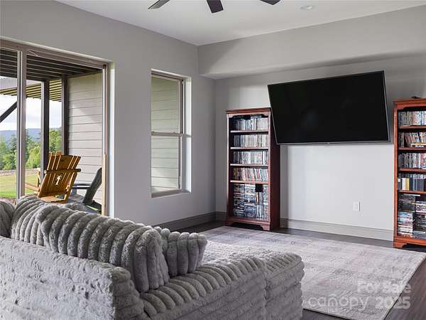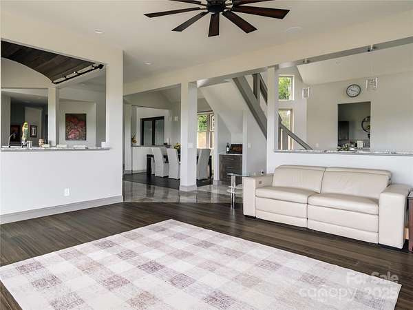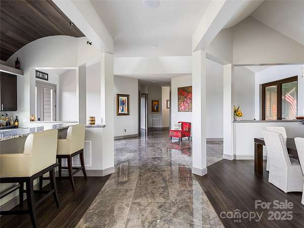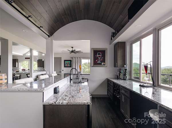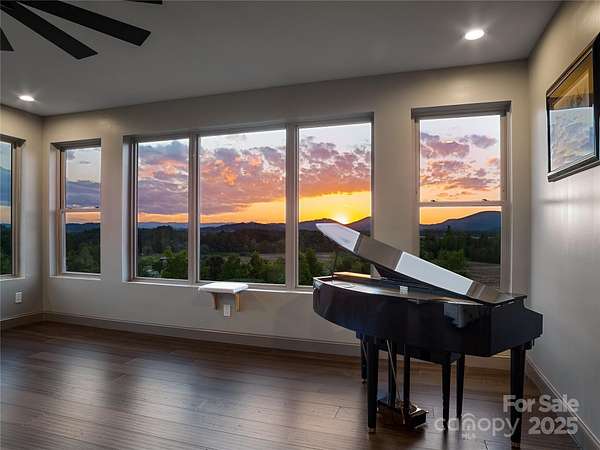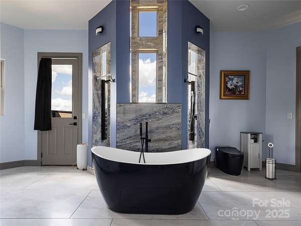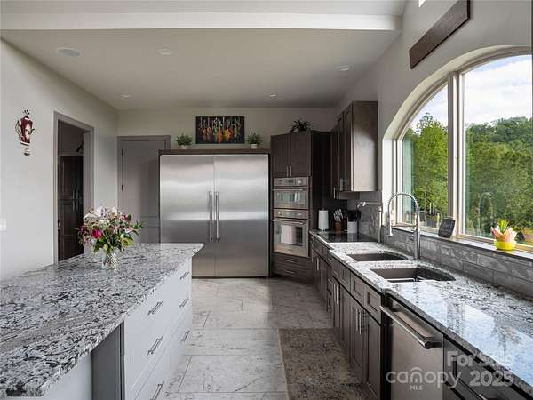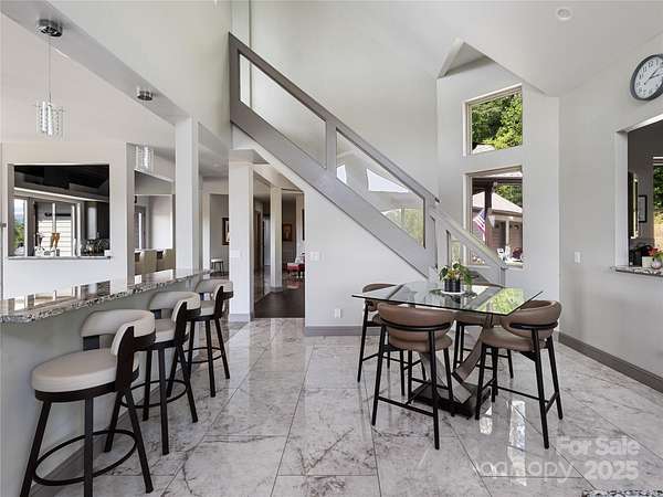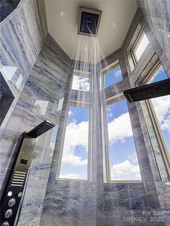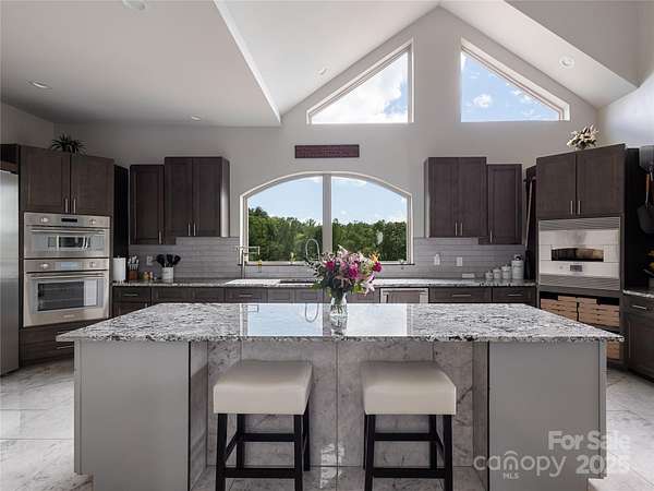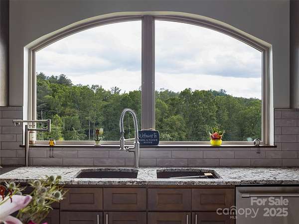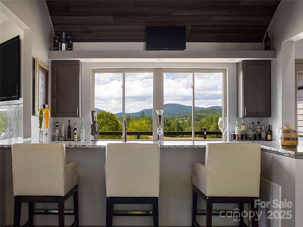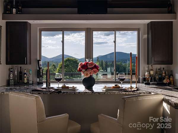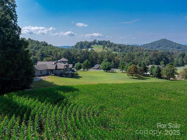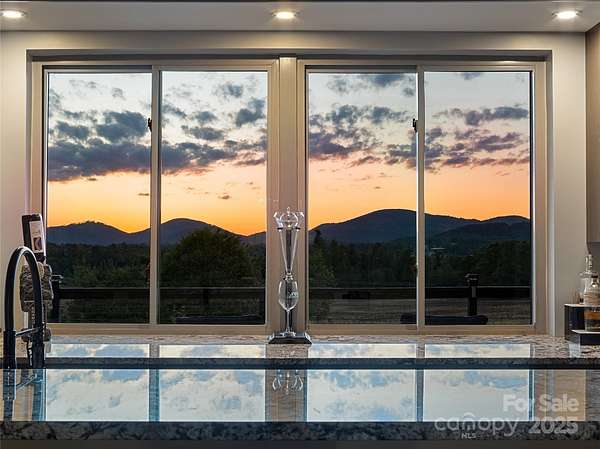 Exquisite Private Estate - A Masterpiece of Design & Craftsmanship Nestled in the midst of WNC best orchards and vineyards, this builder's own private estate offers a rare combination of luxury, privacy, and natural beauty. Set on a sprawling 2.7-acre parcel, this home is surrounded by the serene countryside, offering sweeping views of beautiful sunsets, mountain ranges and rolling fields from every room. Despite its tranquil, secluded location, the estate is just minutes away from shopping, dining, and travel, offering the perfect balance of peaceful living with easy access to all modern conveniences. IMPRESSIVE ENTRANCE & GRAND LIVING SPACES: As you approach the home, you're greeted by custom double entry doors that open into a soaring 25-foot foyer adorned with pristine marble tile flooring. Every corner of the home is designed to impress, with 8' doors through out, high ceilings, sliding doors and wall-to-wall windows that frame panoramic views of the surrounding landscape. PERFECT FOR ENTERTAINING: The heart of the home is the main level entertainment bar, featuring a stunning wood plank barrel ceiling. This fully equipped space is perfect for hosting, complete with a keg dispenser, glass washer, wine holder, beverage cooler, and a wine fridge. Windows open to a breathtaking outdoor bar and over 600 square feet of outdoor space, making indoor/outdoor entertaining effortless. The formal dining room with a cathedral ceiling is a perfect setting for elegant gatherings, while the spacious family room with a gas fireplace offers the ideal spot for intimate relaxation. The adjoining breakfast area with a breakfast bar provides a cozy spot to enjoy your morning routine. GOURMET KITCHEN: The chef's kitchen is a true work of art. Boasting a 10-foot seated island, high-end appliances, including a 6-foot Thermador fridge/freezer, convection wall oven, induction cooktop with downdraft, and pot filler, this space is perfect for both culinary professionals and home cooks. A built-in pizza oven adds a fun touch for pizza enthusiasts. The Butler's pantry features a prep sink, pass-through to the main kitchen, and large windows to keep the space light and airy. Custom cabinetry and granite countertops complete the gourmet experience. Elevator will take you to the sky bar lounge with wall to wall windows and captivating views. LUXURIOUS PRIMARY SUITE: The primary ensuite wing is a true retreat, offering ultimate privacy and luxury. Enjoy breathtaking views through 12-foot sliders that lead to a private balcony. The spa-like bath features a freestanding soaker tub, his-and-hers vanities, and a 20-foot ceiling shower with a rain head and partner body sprays. Step out onto your private balcony with an outdoor shower for the ultimate relaxation experience. The custom walk-in closet is a masterpiece with an island and ample space for your wardrobe. ADDITIONAL BEDROOMS AND APARTMENT: The home also features an elegant guest suite with a private bath and an office for work or study. The fully finished lower level is designed as a private apartment with a separate garage. This level includes a living area, kitchenette, dining space, bedroom, large bath, and a bonus room. The space opens to a covered patio area, offering magnificent views of the surrounding mountains and fields. EXTRAORDINARY AMENITIES & UNMATCHED VIEWS: Downstairs, you'll find a wine cellar and a gym-both designed with the finest materials and finishes. All areas of the home open to outdoor spaces designed for both relaxation and entertainment, including massive views of the surrounding landscape. The estate is perfectly positioned for those who love the charm of rural living, while being close enough to major conveniences, making it the best of both worlds. With a 5-car garage, courtyard parking, and ample space for guests, this estate is designed for those who appreciate the finest in luxury living.