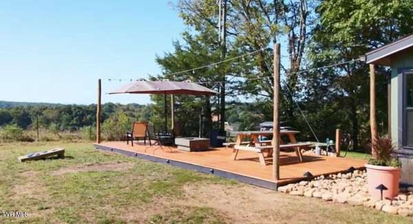 Unplug from the noise and connect to what matters. This mountaintop home is ready for you to move-in. So if you're searching for privacy paired with breathtaking long-range mountain views, this hillside retreat is full of opportunity. Perched in a serene setting, this tiny home offers the perfect escape for peace and quiet, a potential short-term rental, or an ideal site to build your dream home. The property already hasa4 Bedroom septic installed and permitted, power and water all in the direct spot with full driveway completed. Bring your dreams and ideas for this lot is truly build ready. Inside, the open living and dining area is designed to showcase the stunning mountain views, creating a warm and inviting space. The home features durable LVT flooring throughout. The bedroom now offers a comfortable queen-sized layout providing a more spacious and relaxing retreat. The full bathroom includes tile flooring with the added luxury of heated floors, along with a convenient storage area. Step outside to enjoy multiple outdoor living spaces. A private covered back porch sits just off the primary bedroom, offering a quiet place to unwind. The expansive outdoor deck is perfect for entertaining family and friends, complete with a hot tub, fire pit, and unforgettable stargazing. An outdoor shower adds to the charm and functionality of this unique property. Additional features include a pond, gravel driveway, and a storage shed (purchased but not yet assembled) that will convey with the property. With incredible mountain views visible from the living room, dining area, and bedroom, this property truly delivers a one-of-a-kind setting for relaxation or future possibilities. No state tax. No city tax. Private. Soulful. Unforgettable. A true gem of a find!