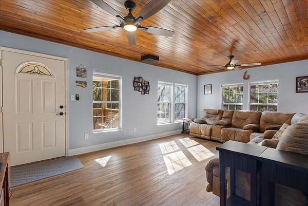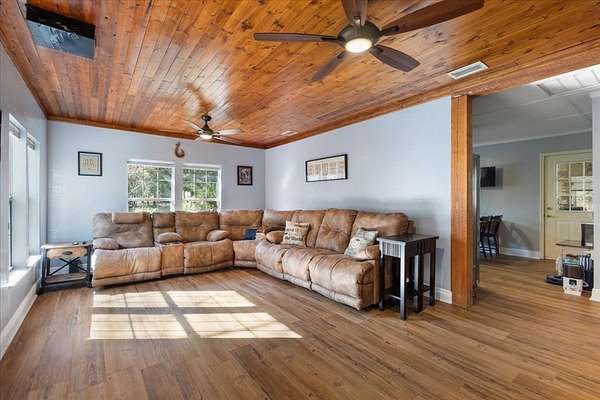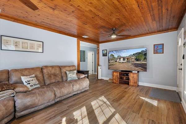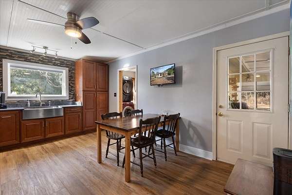 Welcome to this beautiful 3-bedroom, 2-bathroom home nestled on almost 2 peaceful acres -- the perfect blend of comfort, charm, and functionality. Step inside to discover a stunning remodeled kitchen featuring stainless steel appliances, including a gas cooktop, built-in oven and microwave, and a stainless farmhouse sink that adds a touch of timeless elegance. The home's bright living spaces feature durable luxury vinyl plank flooring, while the bedrooms offer plush carpeting for added comfort. You will love the newly and tastefully remodeled bathroom combining modern finishes with classic style. Enjoy peace of mind with a metal roof and a new water heater, ensuring longevity and efficiency for years to come. Outside, you'll find ample storage with two large sheds, including a spacious workshop--perfect for hobbies, tools, or extra space. Relax on the charming front porch, ideal for enjoying your morning or afternoon coffee, or unwind on the private screened-in back porch, the perfect spot for reading a book or soaking in the quiet scenery. This property offers the best of country living while being just a short drive from town conveniences. Don't miss your opportunity--call today to schedule your private showing!
