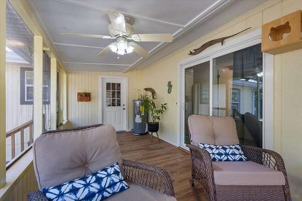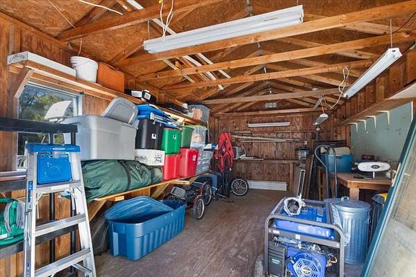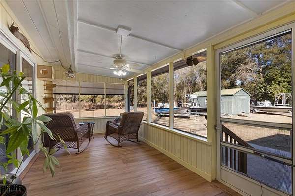 - Covered Porch, Gutters/Downspouts, Screened Porch, Shed
