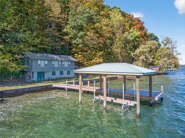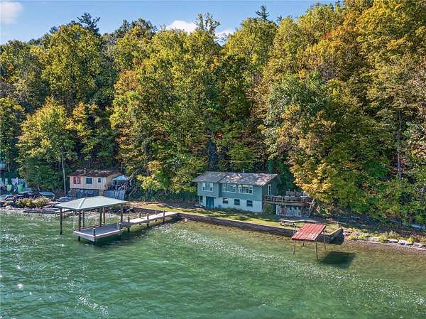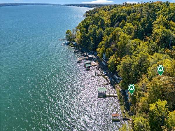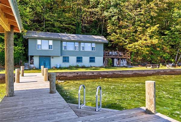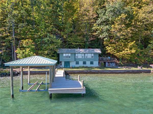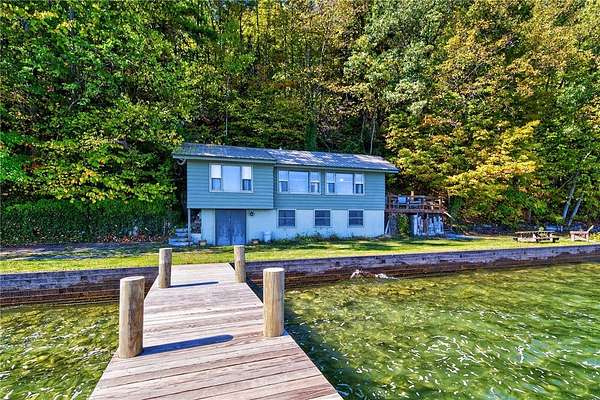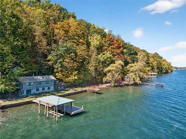 It's lake time! Come and see this Cayuga Lake westside retreat with 100 ft of frontage, including a new dock with permanent covered boat lift, and an updated Break Wall. This property is a special one - drive to door and walk to the water! 2 separate living structures each consisting of 1 bedroom and 1 bathroom, with a kitchen. The main cottage is a quaint abode at lake level, with sweeping lake views, an attached elevated deck, and lower level workshop/storage area to keep all your tools and lake equipment dry. The upper cottage is a perfect auxiliary space just up the hill, where you could host guests, make a private office, or create that dreamy art/music studio you've always dreamed of. Enjoy the lake season while you fish and swim from the spacious deck area of the new dock and enjoy all the activities the lake has to offer. Plenty of land remains to add a pole barn or create an additional parking area. Conveniently located on the Cayuga Lake Wine Trail, and very close to the Seneca Lake Wine Trail. 30 minutes to Ithaca. 20 minutes to Seneca Falls. 75 minutes to Rochester & Syracuse! Call for more info Today!