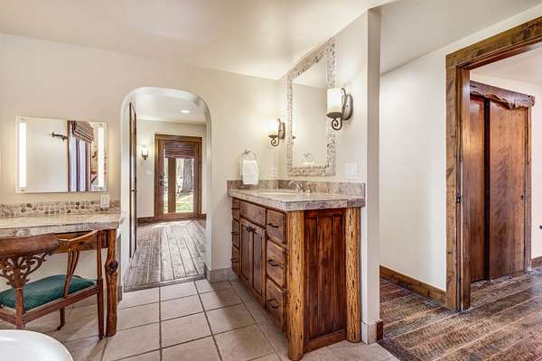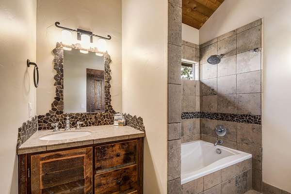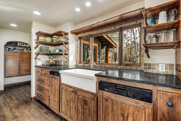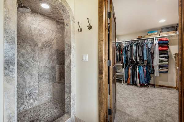 - Breakfast Bar, Built-In Features, Ceiling Fan(s), Enclosed Toilet(s), Granite Counters, Kitchen Island, Linen Closet, Open Floorplan, Pantry, Primary Downstairs, Soaking Tub, Stone Counters, Tile Counters, Tile Shower, Vaulted Ceiling(s), Walk-In Closet(s)