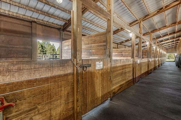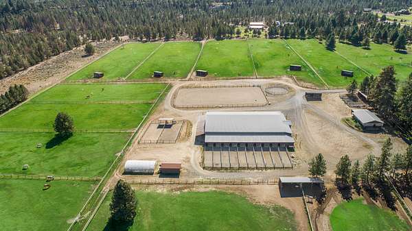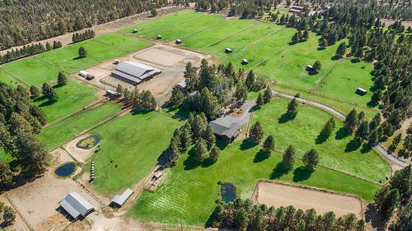 Silver Horse Ranch, a 40 acre private equestrian estate on the edge of the Cascades yet only 4 miles to Bend's West side restaurants and shops. Warm and inviting lodge inspired home with rough sawn wood floors, custom wood accents and river rock fireplace. A summer camp outdoor setting with ancient ponderosas, ponds, irrigation creek and fire pit. Unlimited income potential as owners are currently operating an award winning horse boarding facility. More infrastructure than one could list with 27 acres of irrigation, gated entry, 15 cross fenced turn out pastures with shelters and auto waters, two outdoor arenas, indoor arena, round pen, 10 stall barn with two tack rooms and covered hay storage. Fully finished, 2,840 sf insulated, heated shop with RV parking. Self sustained living with its large greenhouse, chicken coop, and room for all the barnyard animals. Numerous other structures including, work out studio, meeting room with kitchenette & full bath, a once in a lifetime property.