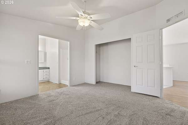 - Ceiling Fan, Laminate Flooring, Laundry, Vaulted Ceiling, Vinyl Floor, Wallto Wall Carpet, Washer Dryer