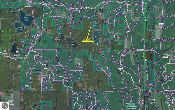 Co Rd 612 east from Kalkaska to Blue Lake Rd, turn north to W. Blue Lake Rd, turn north again to property on left.