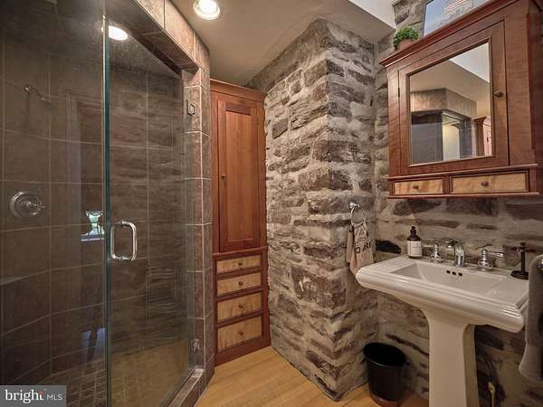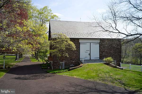 If you are seeking a true Bucks County Estate rich in history and elevated for todays living, then this is it! Overlooking picturesque Cabin Run Creek and bucolic farmland this Bucks County estate dates back to Circa 1785, a rare offering- restored and expanded set on over 12.5 acres of rolling and open land on a postcard setting! At its heart is a magnificent 4 bedroom stone farmhouse, where original character meets refined country living. Rich with exposed stone walls, antique beams, and bespoke craftsmanship, the home opens to a series of inviting outdoor spaces-stone terraces, a walled courtyard, a serene pool setting and gardens bordered by dry-laid stone walls throughout. Ancillary structures include the main barn with radiant-heated, finished lower-level barn currently used as an entertaining and office retreat , but would also make a signifiant studio space for an artist, designer or can easily be converted back to a working barn with Dutch doors that open to pastoral views. Endless possibilities, with kitchen and full bath. Additionally a separate oversized 3 car garage with 2 bedroom, light and airy full service carriage house. An additional 24+ acre parcel-unpreserved with its own separate road access is available for purchase. This land offers remarkable potential for equestrian pursuits, farming, pasture, or the creation of a second residence. A setting of rare beauty and privacy, this is more than a home-it is a generational estate in one of Bucks County's most picturesque valleys. Close to Philadelphia, Doylestown and close proximity to all amenities and I 78. An impressive Country Estate!