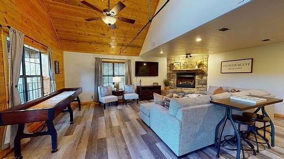 Welcome to the beautiful Glover Bluff Cabin! It is situated right above the flowing Glover River in the quiet town of Battiest, OK. It is only a short 20-minute drive north of Hochatown, the scenery through the winding landscape of the Kiamichi Mountains is simply breathtaking! The cabin offers a spacious interior design that has been recently remodeled giving it a unique rustic flare and have plenty of room to entertain. There are 2 bedrooms downstairs with a shared bath and an upstairs loft that has bunk beds and a bath. The Glover Bluff cabin sleeps 8 adults comfortably, with an additional sleeping area in the upstairs loft. The outdoors is where you will want to spend most of your time with a spacious covered wrapped porch and open-air balcony for incredible views of the Glover River below and lots of room for outdoor activities with over 3 acres to explore. This property is perfect for a 2nd home or use as your personal vacation home. The Glove Bluff cabin is with a property management company and rents well throughout the year. Call for more details!