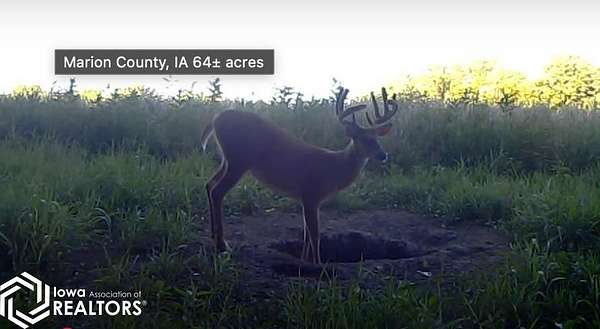 This 64-acre income-producing farm in Marion County, Iowa, combines top-end agricultural potential with excellent recreational appeal. Featuring strong soils, diverse habitat, and a steady annual income, this property is a standout opportunity for both land investors and outdoor enthusiasts. The farm is enrolled in a CRP program through 2039, producing $14,866 annually while creating exceptional wildlife cover. White Breast Creek flows along the south boundary, offering scenic views, natural beauty, and a reliable water source. A 5-acre food plot combined with a newly installed blind makes for an ideal shotgun or muzzleloader setup, while the tall native grasses provide prime bedding and security cover. Surrounded by expansive agricultural fields, this property becomes the hub for food and cover once the surrounding crops are harvested-drawing wildlife from all directions and creating outstanding hunting opportunities. With strong soils averaging a CSR2 of 75.7, the farm also provides excellent potential for future row crop conversion if desired. Located just 7 miles from Melcher-Dallas, 22 miles from Chariton and Indianola, and only 35 miles from Des Moines, this farm offers an ideal blend of rural seclusion and easy access to nearby towns and amenities. It's a truly unique investment and recreational opportunity in Marion County.