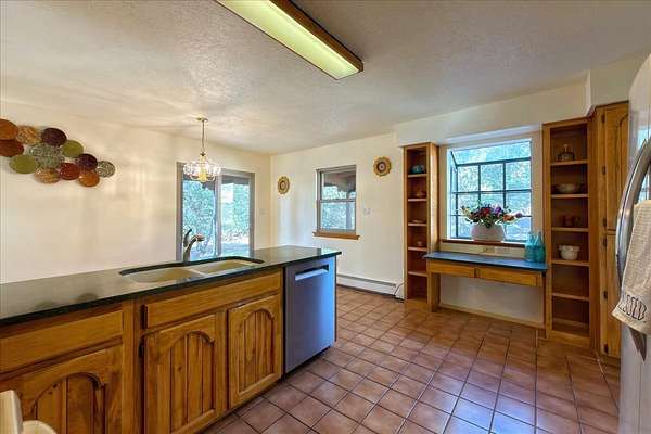 Custom-built by its one and only owner, this thoughtfully designed Santa Fe home offers privacy, efficiency, and a deep connection to nature on approximately 2.48 acres with forest views and hiking access right out the back door-yet a mere 15-MIN drive to the Santa Fe Plaza. The home was intentionally designed for passive solar living and also features solar panels that have eliminated electric bills since being installed, delivering comfort with long-term efficiency. Major value upgrades are already complete, including a brand new TPO roof, new skylights, and a new Navien dual heating system-the big-ticket improvements buyers are relieved to have behind them. Outdoor living is enhanced by a thoughtfully designed water feature that feeds into a small pond, creating a soothing backdrop enjoyed from both the covered patio and the deck off the primary bedroom, all overlooking a serene forest setting. Inside, the home offers 4 bedrooms, 3 bathrooms, and 2,261 square feet of living space, including a welcoming living room with a wood-burning fireplace, a dining room, kitchen with breakfast nook, and a standout sunroom that previously housed a hot tub-a bright, plant-friendly space ideal for relaxing or reimagining. The sellers observed over 50 species of birds throughout the year, underscoring the home's connection to its surroundings. Quiet, private, and thoughtfully built, this is a property where the fundamentals are done-leaving the next owner free to personalize and make it their own.