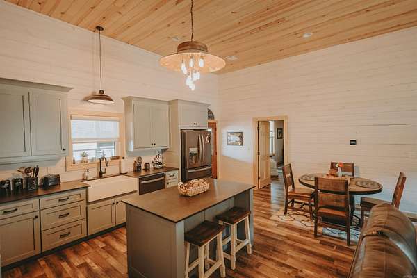 This stunning modern dogtrot home blends rustic charm with contemporary design, offering the perfect blend of privacy and comfort. At the heart of the home is a beautifully designed, enclosed dogtrot, featuring garage doors that open up to create a seamless indoor-outdoor living experience. This home features a complete built-in outdoor kitchen with plenty of room to relax and entertain, while taking in the stunning mountain views and listening to SweetWater Creek below. A separate garage provides space for storage, hobbies or workshop area. Nestled at the foothills of the Ouachita Mountains and just minutes from the Caddo River and the Glenwood Country Club. This well thought out floor plan and exceptional craftsmanship are a must see.