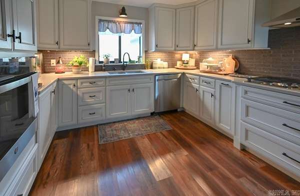 This beautiful yet secluded home near pristine Lake Ouachita is ready for its next owner. Built in 2022, with nearly 2,400 sq ft of thoughtfully designed living space and sits on 4.87 acres with a sodded yard and full Rainbird sprinkler system. A covered front porch spans the entire length of the home and welcomes you into a spacious entry featuring a formal dining room. The entry opens into a stunning great room with vaulted ceilings and a wood-burning fireplace with pellet heat, creating a warm and inviting atmosphere. The home is wired for a generator and includes built-in propane heaters in addition to central heat and air, offering comfort and peace of mind year-round. The open layout is enhanced by an island that separates the living area from the kitchen and breakfast room. Every detail has been carefully planned, from built-in appliance garages and specialty cabinetry to strategically placed electrical outlets. The split floor plan provides privacy and functionality. One side of the home features a laundry room, pantry, and a spacious primary suite with a large bath and two walk-in closets. SEE DOCUMENTS FOR COMPLETE DESCRIPTION.