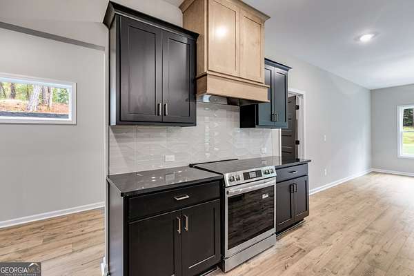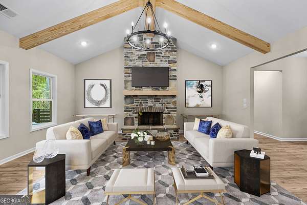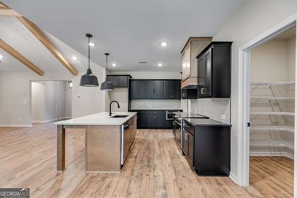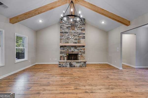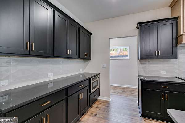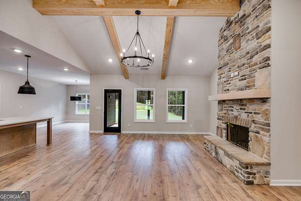 BIG, BLACK & BEAUTIFUL! This home is what you've been dreaming of. Beautiful setting in a very desirable NON-CITY N'hood with NO HOA and minimal covenants. Owner's Suite on MAIN LEVEL - Double front doors, Stone work that is DREAMY - 3 car garage - wood flooring in main level common areas - Exquisite Kitchen with Central Island and designer touches throughout. Wood burning floor to ceiling Fireplace with Stained Wood Beams in Vaulted Family Room - Powder Room and Dining Room, along with walk in pantry. Wood Stairs lead to an open LOFT AREA, a huge secondary bedroom with private bathroom & walk-in closet with 2 more secondary bedrooms and shared bath on other side of upstairs. SMART HOME READY PACKAGE - Covered Back Patio - Spray foam insulation in attic - Zoned HVAC - Incredible Builder Warranty - NO CITY TAXES!