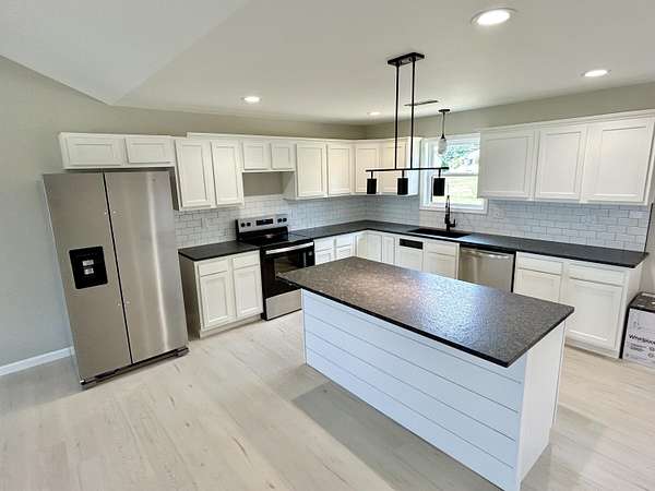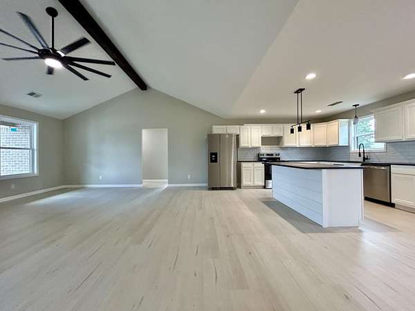 Discover the perfect blend of craftsmanship and modern design in this stunning New Construction home. Offering 4 cozy bedrooms, including a split BR floor plan, and 2 full bathrooms, this property is an ideal retreat just minutes to schools and Lee's Ford Marina. Indulge in culinary adventures in the custom kitchen equipped with sparkling granite countertops and top-notch appliances. The great room welcomes relaxation and entertainment, while wood and tile flooring throughout ensure durability and easy maintenance. The master bedroom is a true oasis with an en suite featuring dual sinks and plentiful cabinetry for all your essentials. Step outside to enjoy the back deck, perfect for savoring serene views of the back yard. Completing this home is a large utility room and a 2-car garage providing ample storage. Don't miss the chance to make it your own!