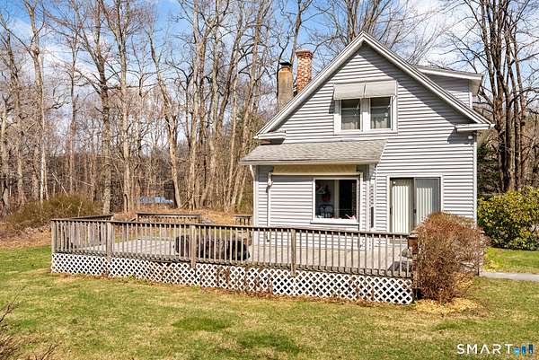 This 2-bedroom, 1-bath Cape sits on a flat and open 3.48 acre lot, bordering protected Litchfield Land Trust property to the rear. The exterior features a 2-car detached garage, large 29x12 ft. deck, and beautiful mature oak trees. Several key updates have been completed in recent years, including a newer roof (approximately 10-12 years old), furnace, a newly paved driveway (2025), and a 3-bedroom septic system installed in 2016 - providing potential flexibility for future expansion. The main level includes a kitchen, dining room with sliders to the deck, a living room, and an enclosed three-season porch. Upstairs are two bedrooms with under-eave storage and a full bathroom. With some cosmetic updates and TLC, this home offers excellent potential and is well-suited as a starter home or downsizing option. Ideally located just minutes to Mt. Tom State Park, Bantam Lake, and the Litchfield Town Green. *Estate sale subject to probate court approval. Property is being sold as-is. No property disclosures available; buyers to perform their own due diligence.