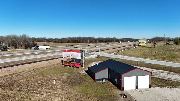 Up for sale is a highly sought after property located in Webster county Missouri just a short drive from Springfield Missouri, Marshfield Missouri and Strafford Missouri. Built in 2023, the property offers a HUGE Lighted billboard out front facing Interstate 44 (both eastbound and westbound lanes with the V design) Large shop area with concrete floor, 200 amp service as well as office area. The well and septic was installed new at the time of the build (2023) 2,250 sq ft total. The property is 2 acres +/-. Large gravel area has been packed down by semi trucks that were a prior occupant. The shop features (4) 12'x12' doors with automatic door openers that can be managed remotely. The camera system goes with the property sale also. The office area includes (2) bathrooms, storage closet and another room where the well tank is located. Pre-wired for a hot water tank but isn't installed. There is an electric heat pump for the office.