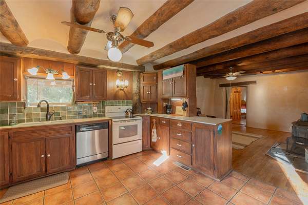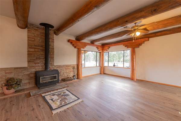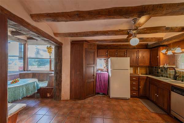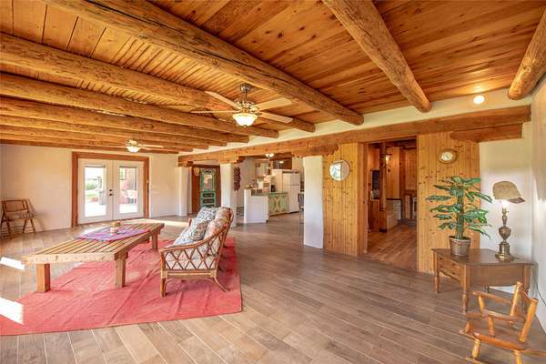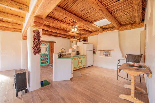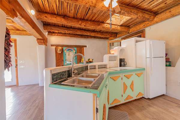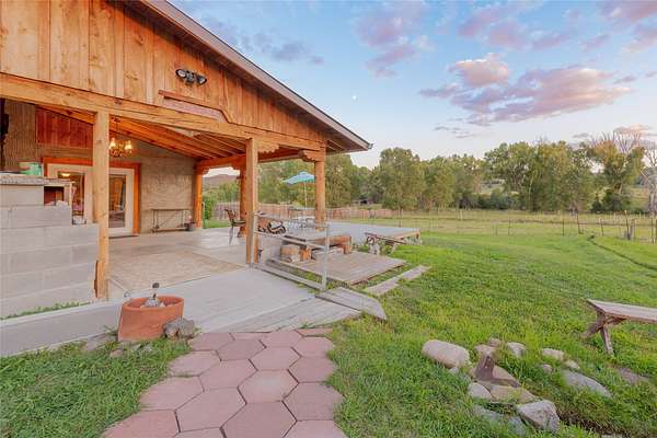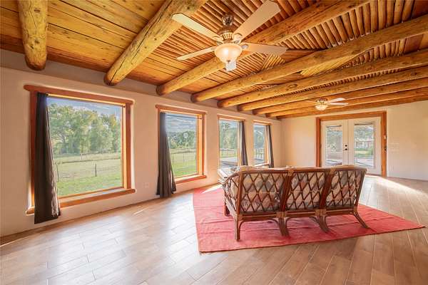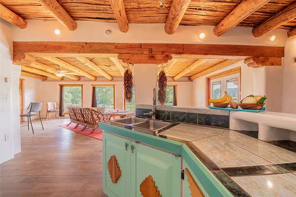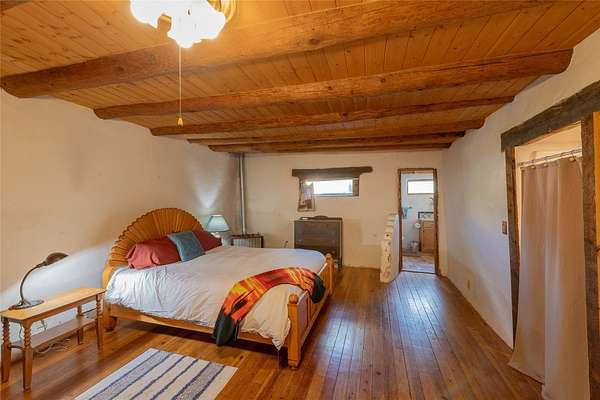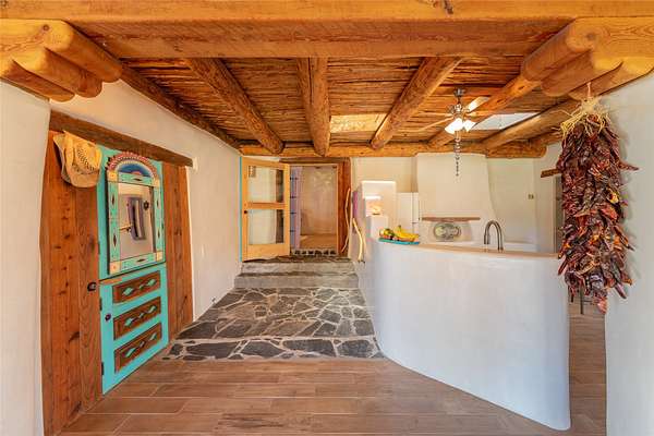 Welcome to the Sunrise and Sunset Homes. Nestled in the quaint Village of Vadito, NM, lies this rare 6+ acre property with two unique adobe homes, situated for peaceful pastural views that provide the full colorful spectrums of New Mexico sunrises and sunsets. The potential for organic farming, (soil has been free of herbicides and pesticides, nourished by only sheep and llama manure for owner's 25years), agricultural and livestock, a retreat or healing center, a family compound, and even rental income while living in one of the homes. The dark skies of this quiet location will leave you in awe of the brightness of the Milky Way, Orion, and all the constellations. Listen to the Rio Pueblo River which borders the south line of this property, alive with trout perfect for fly fishing and spot a heron on the shore catching breakfast. A river fed pond sits on the west side of the property awaiting your presence to share its views and quiet solitude. The property contains acequia water rights (6 acres), 3 water memberships available with the MDWCA that has been awarded annually in New Mexico for quality drinking water, two septic systems, a garage/ shop/ equipment building, a corral with 3 rooms and a hay barn that currently houses 2 llamas who produce manure second only to bat guano. The Sunset House boasts a kitchen that was recently refurbished with granite countertops, storage galore, soft close cabinets and a large kitchen island with seating space. There is new flooring throughout the living room, kitchen, and bathroom areas. The living room includes a wood burning stove and views of glorious sunsets framed by carved vigas and corbels. There is a 12'x 17' greenhouse/sunroom/mudroom and also a 30' x 10' porch with storage attached. The Sunrise House is an 1864 circa custom updated adobe home with 2 separate living areas joined by a beautiful custom door. Either area could be perfect for caretaker or short-term renter. Local lore has it that Billy the Kid used to dance here when it was originally a dance hall! Ground floor living area has a gorgeous caramel- colored ceiling with vigas and latillas designed with a centerpiece Ojo de Dios. Four large windows in the great room look towards the fields and river to view and inhale mother nature's beauty. Walk out from this great room to a 21' x 20' covered patio with attached composite 16' x 20' deck for those lovely morning/evening coffee, tea or cocktail times. Attached to this home is a 13' x 40' storage area. Could be converted to a carport, etc. This property is located approximately 18 miles SE of historic towns Ranchos de Taos and Taos, New Mexico and at approximately 7,500 ft elevation with a seasonal view of the 13,000 ft Jicarita Peak (a mountain held sacred by the local Picuris Pueblo people). The property produces a synergistic ecosystem and wildlife habitat for flowers, grasses, llamas, hawks and eagles among other wild birds. Sometimes you even get a visit from a buffalo or two! Located within 60 to 70 miles of six ski resorts, namely Sipapu (8 miles), Taos Ski Valley, Angel Fire, Red River, Ski Santa Fe, and Pajarito Ski Valley; supplying an outstanding selection of diverse activities for people of all ages and abilities. A RARE PROPERTY AVAILABLE FOR SALE! Please schedule your viewing today. Buffalo not included