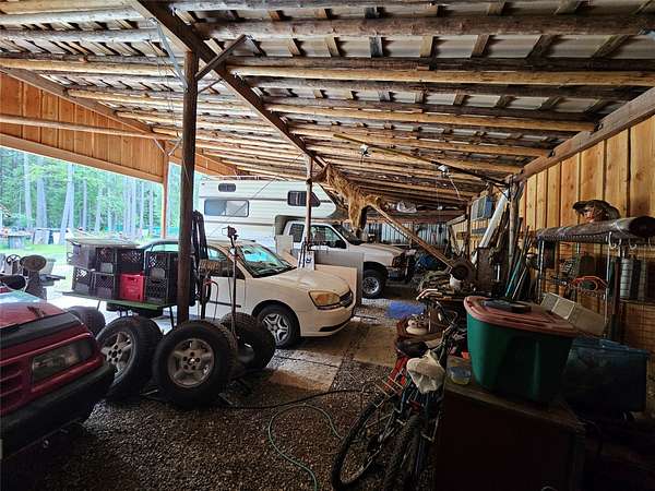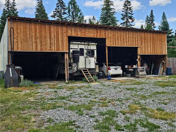 Welcome to your new home on a peaceful and private 4-acre parcel, perfectly nestled toward the end of a quiet housing area with limited passing traffic. The land is mostly level and beautifully treed, with fire abatement already completed, offering both safety and serenity. Two small wildlife ponds on the property attract a wide variety of animals, making it an ideal setting for nature lovers and those seeking a deeper connection with the outdoors. The home itself is approximately 900 square feet and is designed with compact efficiency in mind. It features 1.5 bedrooms and one full bathroom, offering a cozy yet functional living space. You'll enjoy the benefits of well water, electric service, a private septic system, and high-speed fiber optic internet. With three different heat sources-wood, propane, and electric-you'll stay comfortable through every season. The front yard is fully fenced, perfect for pets or gardening. One of the standout features of this property is the enormous four-bay shop, built in 2022. It's large enough to accommodate an RV and offers more than enough space for tools, vehicles, and hobbies of all kinds. The property also includes a water well with a buried cistern, as well as a rainwater collection system already in place to support gardening and animals. Located close to town, you'll have easy access to gas, groceries, banking, and other essential services. For outdoor enthusiasts, the home is just one mile from a river boat access point and close to public land for hunting, hiking, and exploring. The road to the property is maintained by the county, ensuring reliable access year-round. This property is fully loaded with extras. Included in the sale: The remaining wood in the shed, a personal sawmill for cutting your own lumber, two generators, a wood splitter, a table saw, a small tractor with attachments, a mower, a Jeep with a snowplow, a four-wheeler, multiple trailers, wagons, sleds, and a wide assortment of tools and supplies. The seller is also including a hot tub, washer and dryer, air conditioning unit, two refrigerators, a freezer, a hotplate, microwave, shelves, cabinets, beams, boards, peeled logs, fencing material, steel posts, and propane bottles-nearly everything you need to maintain and enjoy the property.The layout of the home includes a back entry-level living room, a main level with kitchen, dining area, bathroom, pantry, and a combined freezer room and wood storage area. Upstairs, you'll find the bedrooms, tucked away for added privacy. This property is a rare blend of natural beauty, privacy, functionality, and self-sufficiency. Whether you're looking for a quiet homestead, a hunting retreat, or a base for your outdoor lifestyle, this one-of-a-kind home has everything you need-and more.