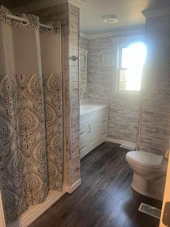 - Carpet Flooring, Ceiling Fans, Laminate Countertops, Linoleum Flooring, New Bath, Tile Flooring, Updated Bath, Walk-In Closets, Window Coverings, Wood Burning Stove