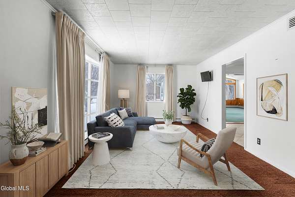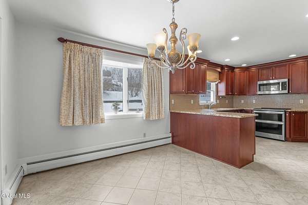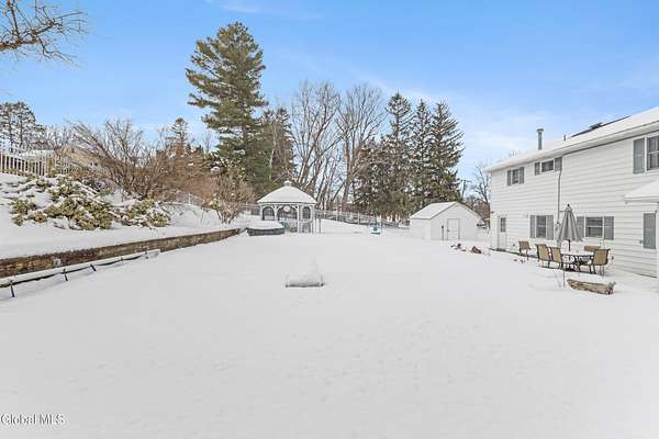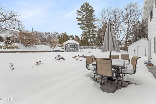 Welcome to this spacious and beautifully maintained 4 bedroom home located right in the village, set on an incredibly rare and expansive 1.8 acre lot! Each bedroom offers generously sized closets (the primary has walk-in), with hardwood floors hidden beneath all upstairs carpeting - just waiting to be revealed. Home has zoned heating! The massive family room is perfect for gathering and entertaining, featuring a cozy gas fireplace and sliding glass door that lead directly to your backyard oasis. Step outside to enjoy a heated in-ground pool surrounded by gorgeous landscaping, plenty of room for outdoor activities and a charming gazebo - ideal for summer evenings and weekend entertaining. The newly remodeled gourmet kitchen is sure to impress, complete with a large pantry and plenty of space for cooking and hosting. A bright and inviting living room, central air conditioning, and a one-car garage add to the home's comfort and convenience. The oversized 1.8 acre village lot offers incredible flexibility- it could be subdivided or simply enjoyed as a private retreat with room to roam. As an added bonus, the seller is offering a $2,500 credit toward replacing the family room flooring. Space, location and opportunity - this one truly has it all!