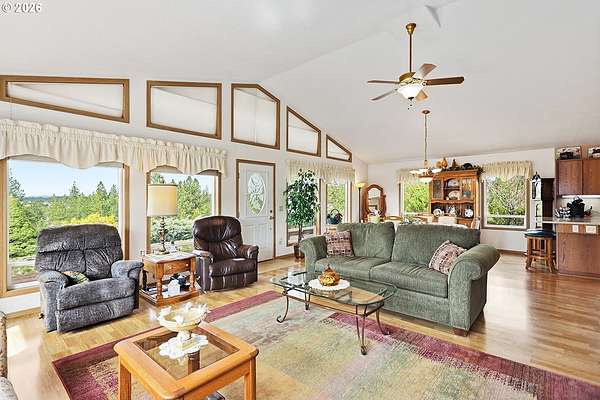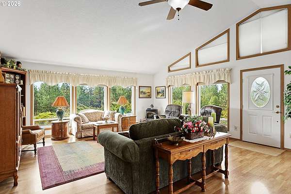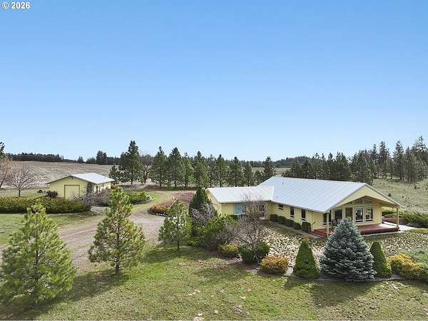 Tucked away on 18 private acres just northwest of Goldendale, this custom 3-bedroom, 2-bath home offers a rare blend of seclusion, natural beauty, and future potential. Located near the highly regarded Thompson Meadows area and near the end of Seely Drive, the property is nearly undetectable from the road, creating a peaceful retreat surrounded by nature. Mt. Adams, Mt. Hood, and the Simcoe Mountains provide stunning views from various points on the property. A beautiful mix of mature fir, pine, and oak trees is interspersed with open meadows and pasture ground, giving the land both character and usability. Whether you are looking for room to roam, space for animals, or simply a quiet setting to enjoy the outdoors, this property delivers. The single-level home is designed with both comfort and efficiency in mind. Its energy-efficient construction helps keep operating costs manageable, while the one-level layout offers easy, functional living for all stages of life. Inside, abundant custom windows along the south and west sides fill the home with natural light, creating a warm and inviting atmosphere throughout the day. These bright living spaces are ideal for relaxing, entertaining, or simply taking in the surrounding landscape. In addition to the home, a well-built, insulated 24' x 36' detached garage/shop provides excellent space for vehicles, hobbies, or storage. A separate partially finished room within the shop, complete with a sink and shower, adds flexibility for guests, workspace, or potential studio use. The property is zoned GR5, offering the potential to short plat into additional 5-acre parcels, subject to county approval. This creates an excellent opportunity for future development, investment, or multi-generational living. If you are searching for privacy, usable acreage, and a thoughtfully designed home in a desirable rural setting, this is a standout opportunity in the Goldendale area. Schedule your showing today!