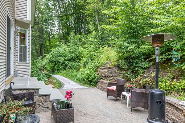 Beautifully updated, well maintained, and privately set back from the road, this Southbury retreat offers the comfort of a full size colonial with the ease of low maintenance living. If you love your weekends free from yard work, this is the home that checks every box. A long private driveway leads you to a peaceful setting surrounded by natural ledge and mature trees, offering a sense of quiet and privacy rarely found in a cul-de-sac setting. Inside, the home shines with a spacious updated kitchen featuring newer cabinetry, granite counters, stainless appliances, and a center island perfect for gathering. The updated bathrooms, large windows, and generous room sizes create an inviting interior that feels warm, modern, and move-in ready. The layout is ideal for entertaining or everyday living with a bright family room, a separate dining room, a comfortable living room, and three well-appointed bedrooms including a serene primary suite. The lower level offers excellent storage or potential expansion. Perfect for buyers who value privacy, an updated interior, and an easy care lot, this home delivers a "lock-and-leave" lifestyle without sacrificing space or comfort. Located minutes to Southbury's town center, schools, shops, dining, and commuter routes. A rare opportunity to enjoy a beautiful home in a sought after location with exterior maintenance kept to a minimum.