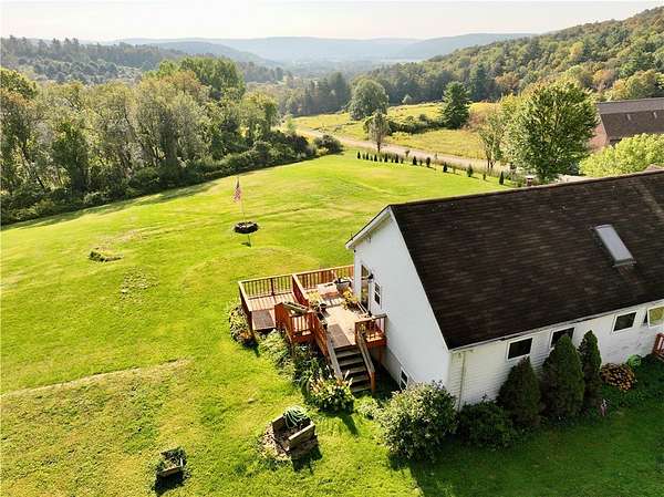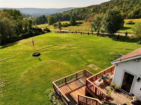 Endless possibilities await at 64 West Hill Rd in Spencer, NY! This 1920's home combines original charm and character with a spacious addition, creating a unique property full of potential. Set on 9.77 acres with epic valley views, you'll enjoy stunning scenery from the expansive wrap-around deck, perfect for entertaining, relaxing, or simply taking it all in. Inside, the large vaulted-ceiling living room serves as the heart of the home, filled with natural light and picturesque views. The primary bedroom features a French door walkout to the outdoors, offering a private retreat. With 4 bedrooms plus a bonus room, there's room for everyone to spread out. Bring your vision whether it's adding a garage, creating a hobby farm, or enjoying wide open space for recreation, this property offers amazing value with endless opportunities.