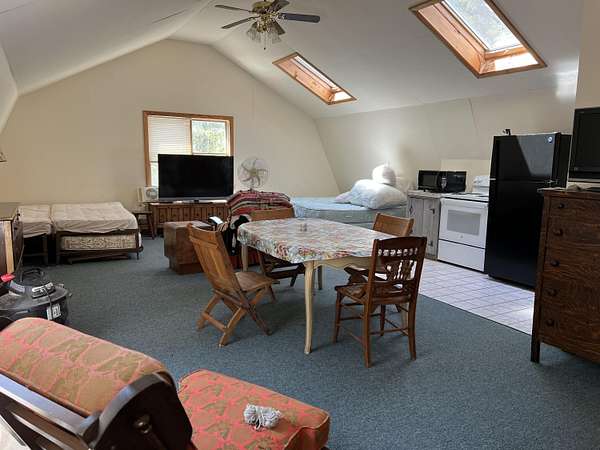 Endless Possibilities await on Bald Mountain Road - Over 2 Acres in Beautiful Rangeley, Maine Unlock the potential of this versatile and inspiring property nestled in the heart of the Rangeley Lakes Region. Situated on a lovely 2.1-acre lot on scenic Bald Mountain Road, this solidly built dwelling offers space, history, and an open canvas for your dreams. Once a knitter's and weaver's school (locally known as ''the Yarn Barn'', and the original site of River's Edge Sport Shop, this property holds a quiet creative energy within its walls. It features a full foundation with a two-car garage below, and above, a spacious, open main level ready for transformation. With a kitchen and bathroom already in place, the structure is equipped to evolve into a warm home, a gallery, a studio, or even a home occupation space. Inside, you'll find a large, open area bathed in natural light, perfect for an artist's loft, workshop, or great room with views of the surrounding forest and seasonal glimpses of Mooselookmeguntic Lake. Outside, the generous lot offers privacy, peace, and the possibility of gardens, outdoor living spaces, or additional development. Located just minutes from Rangeley Lake, hiking trails, and year-round outdoor recreation, this is your opportunity to own a piece of Maine's mountain charmaEUR"and create something truly special.