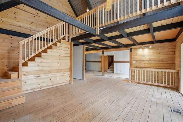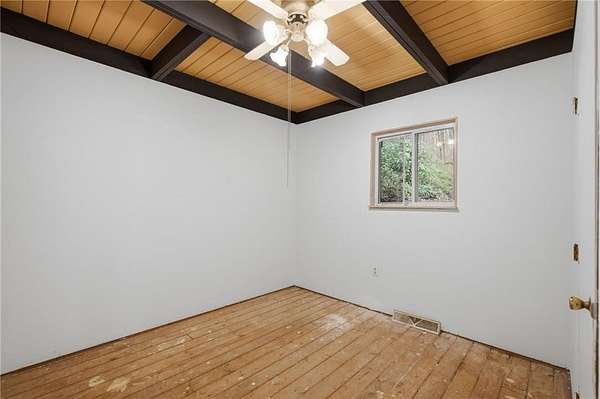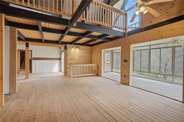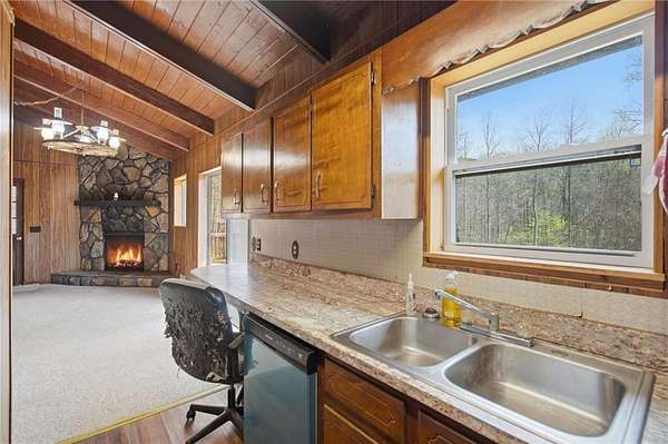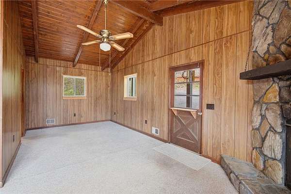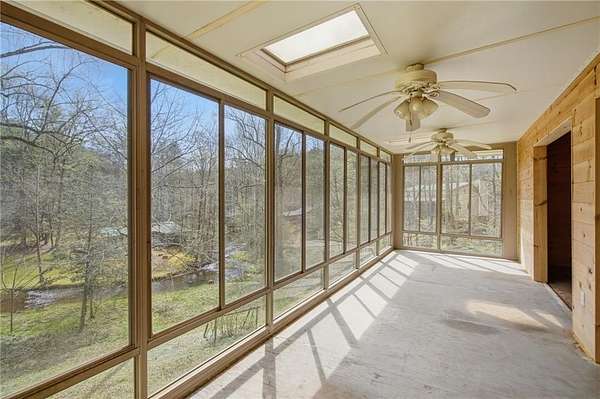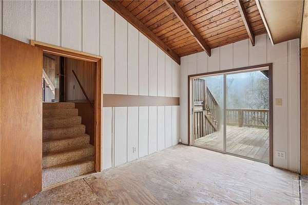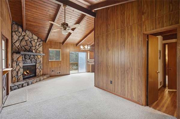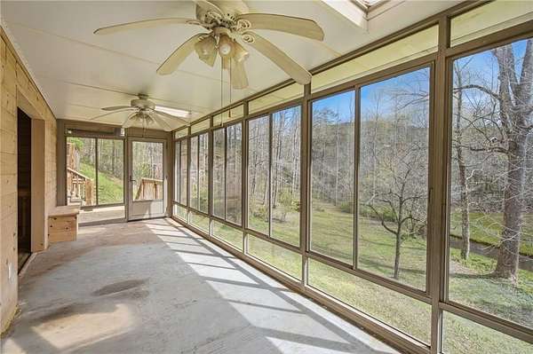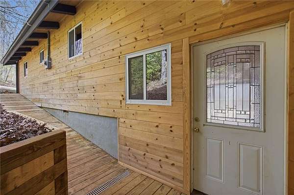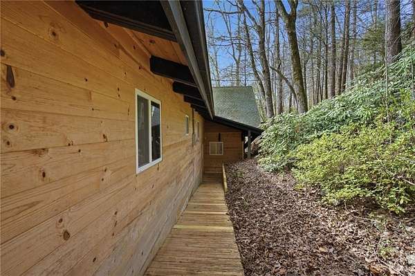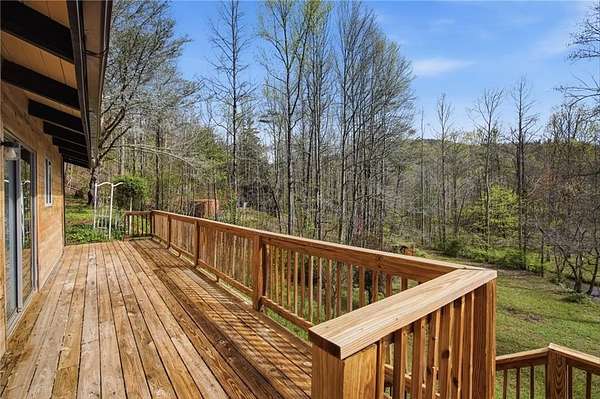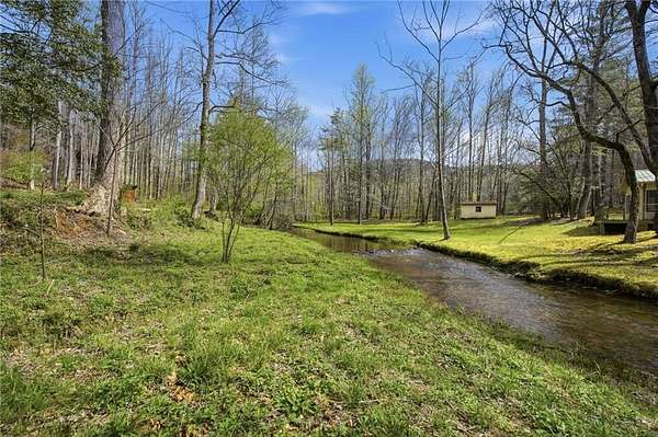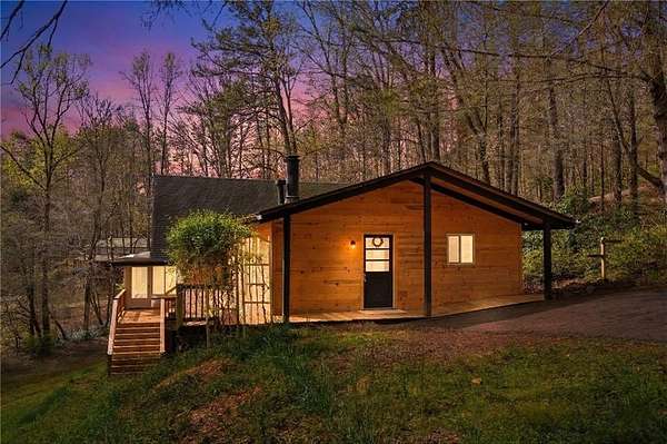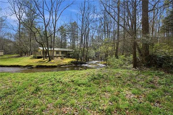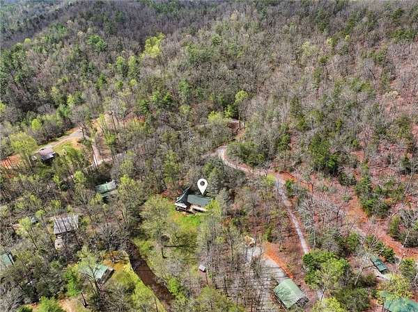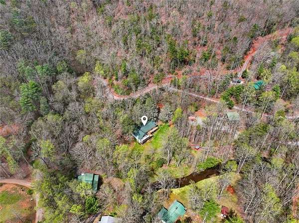 Your dream mountain escape awaits! Incredible retreat bordering the National Forest, ideal for hunters, anglers, and nature lovers seeking peace, privacy, and the soothing sounds of cascading water. This handyman special features a spacious 4BR/3BA, two-story A-frame style home nestled on over 3 scenic acres in a quiet, secluded valley north of Cleveland and Dahlonega, with direct frontage on the East Fork of the Chestatee River (Frogtown Creek). Remote and secluded, yet easily accessible via paved drive and county road, this property offers the perfect balance of privacy and convenience. Inside, enjoy vaulted cathedral ceilings with exposed wood beams, two separate stone wood-burning fireplaces, a sun-filled sunroom overlooking the trout stream, and a versatile loft/attic space. The home offers large upper and lower decks perfect for relaxing or entertaining while taking in breathtaking forest and water views. Additional features include a walk-in crawlspace ideal for a workshop or hobby area, a roof approximately 6 years old, and an abundance of fruit and nut trees including black walnut, plum, apple, and pear. Two old spring box holding tanks offer potential for spring water use. The property boasts approximately 100 feet of trout stream frontage and several hundred feet bordering National Forest, providing direct access to hunting, hiking, waterfalls, and endless outdoor adventure. Set in a beautiful valley setting, this is a rare opportunity to own a true slice of paradise deep within the National Forest, with multiple scenic waterfalls that can be hiked to directly from your land. Properties like this are rarely available. Priced to sell and ready for your vision! Schedule your private tour today and make this one-of-a-kind retreat your own!
