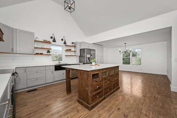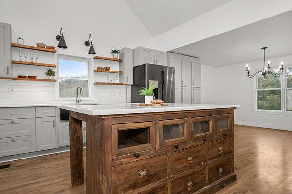 Just outside of Gallatin, you’ll feel a world away on Lindsey Hollow. Across the creek, nestled in the woods, you’ll find a lovely 3 bedroom 2 bathroom renovated farmhouse on 5.01+/- acres. The designer kitchen features a custom bar, modern gold fixtures, black stainless appliances, an apron-front sink, and a touchless faucet. The primary suite includes an oversized walk-in closet with custom built-in shelving. Large walk-in closets in all bedrooms, custom tile work, and a Dutch door are just a few of the charming custom touches throughout.