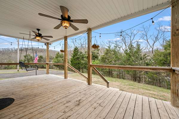 Outside, there are endless amenities from the spacious front porch with ceiling fans and a swing to the sandy beach by the spring fed blue lagoon swimming hole with a mini waterfall and cliffs for jumping. The garage includes space for a workshop and a lean-to perfect for tractor, lawn mower, & ATV storage.