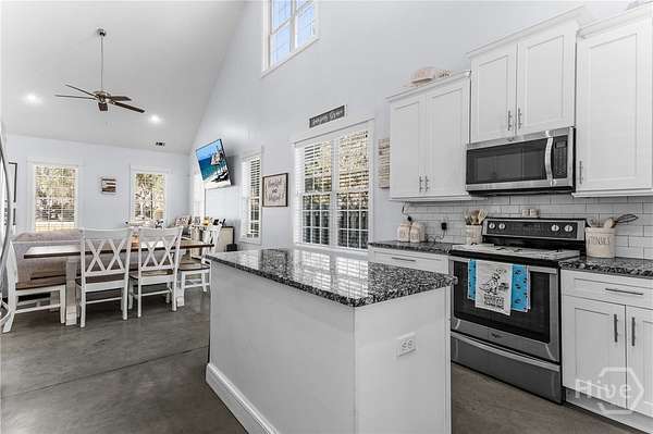 - Attic, Cathedral Ceiling(s), Ceiling Fan(s), Double Vanity, Gourmet Kitchen, High Ceilings, Kitchen Island, Main Level Primary, Pantry, Primary Suite, Programmable Thermostat, Recessed Lighting, Separate Shower, Split Bedrooms, Vaulted Ceiling(s)