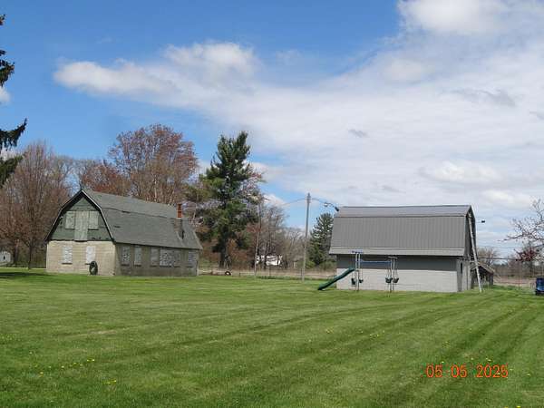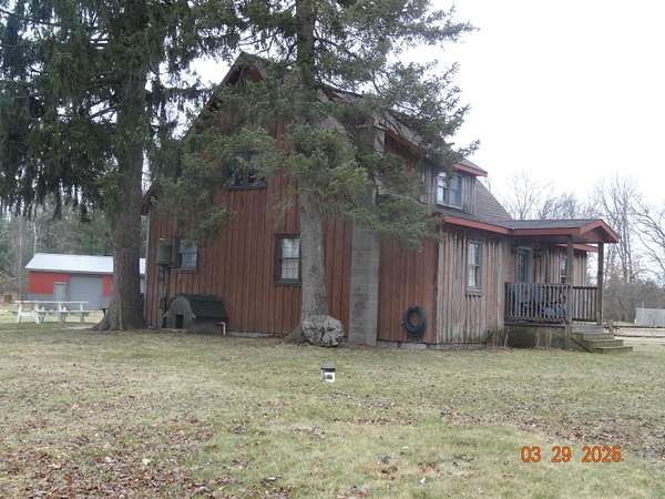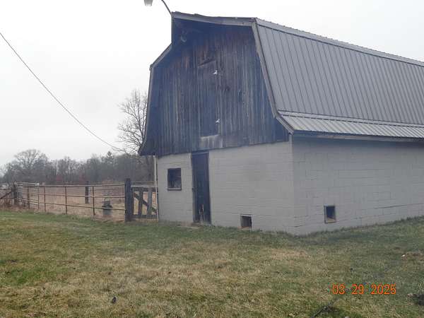 This quaint and energy-efficient farmhouse on 9 partially wooded acres has barns, coops, sheds and a pond and is equipped for self sufficiency. Comfortable interior with 4 bedrooms, primary on the main level, and 2 full baths, formal dining room and main floor laundry. Basement workshop with plenty of room for future workspace. Geo thermal heating and cooling with UG sprinkling and huge gardening area.