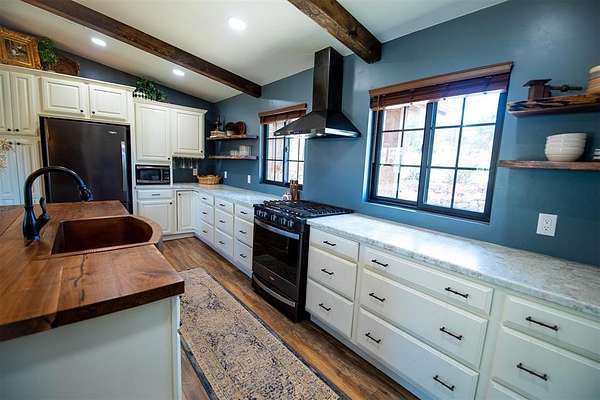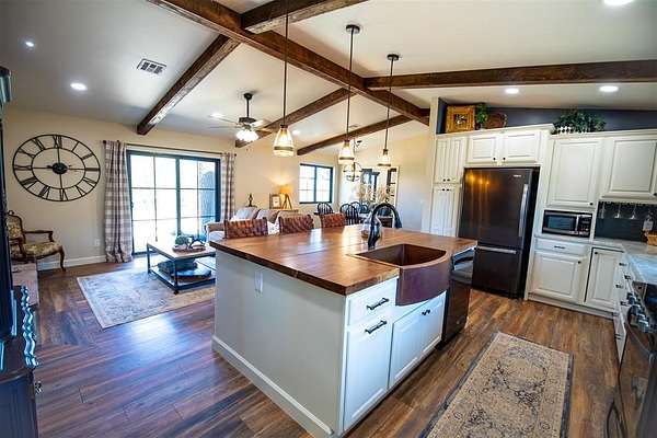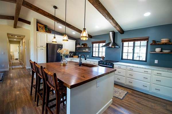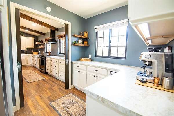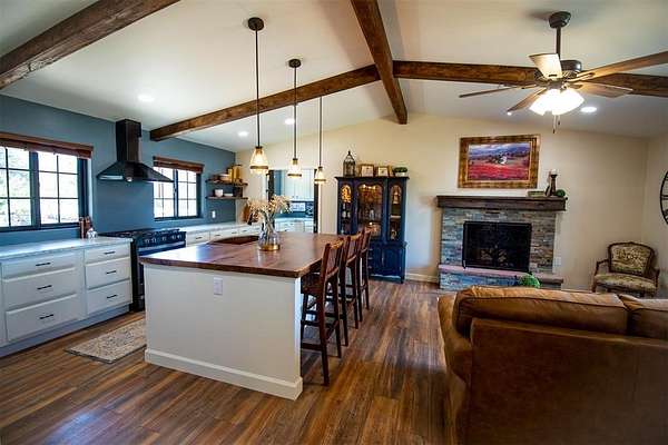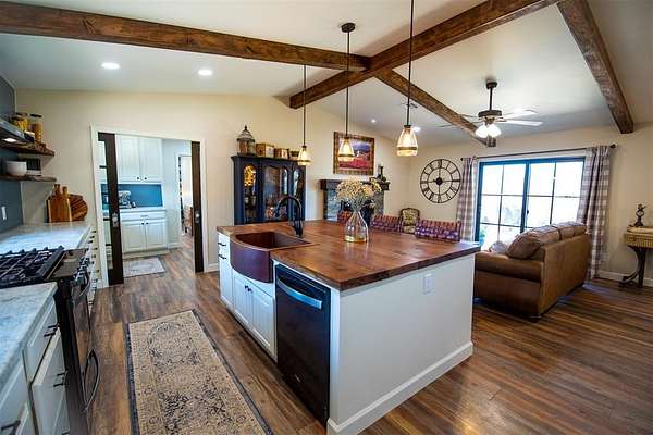 Come and see this beautiful property in Edmond School District! Completely remodeled with intentional interior design everywhere you turn. Set on over 4.5 acres, this stunning property offers the perfect blend of comfort, function, and peaceful country living. Quiet and private, the setting provides a true retreat from the noise while still being conveniently located. The home features 3 bedrooms, 2 full baths, and a half bath, plus a versatile bonus/flex room ideal for an office, study, or optional bedroom. The open floorplan is filled with natural light and designed for both everyday living and entertaining, highlighted by a large island with a walnut countertop, a beautiful copper sink, abundant storage, and a butler's pantry or coffee bar area. The spacious primary suite includes heated bathroom floors and a large walk-in shower with a rain head for a spa-like experience. Step outside to a 1,000 sq ft deck overlooking the scenic property, surrounded by mature landscaping and a gated circle drive that enhances privacy. This property is a true homesteading dream, featuring a she shed with full electric and HVAC, a pole barn and storage container with electric, a chicken coop, fenced garden area, and greenhouse. A dry pond on the northwest side of the property adds even more potential, and includes a pistol range. With countless upgrades and thoughtful details throughout, this one is a must-see.