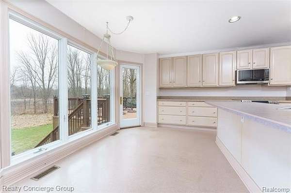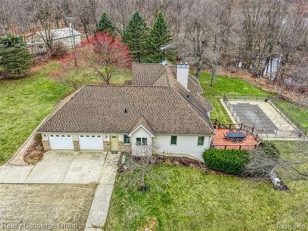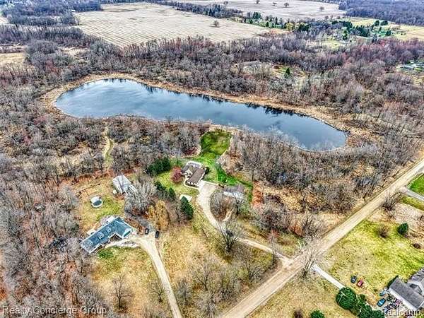 Welcome to this expansive 4 bed, 3.5 bath ranch offering the perfect blend of privacy, space & waterfront living on 10 acres w/ 261ft of frontage on Petty’s Lake. This property is truly an outdoor oasis, featuring a heated saltwater inground pool (14x28), basketball court, firepit area, large deck overlooking the scenic landscape & a massive (27x48) pole barn w/ high-speed internet-ideal for hobbies, storage, or workshop. Enjoy fishing, kayaking & nature right in your backyard, complete w/ food plots that attract wildlife. Inside, the home offers 1969 sqft on the main level plus an additional 1500 sqft in the full finished basement. The main floor features a spacious living room w/ fireplace & oversized windows showcasing the property, flowing into a well-appointed kitchen w/ abundant cabinetry, counter space, eat-in area & counter seating. A formal dining room provides the perfect space for entertaining. The primary suite offers large, dual walk-in closets, jetted tub & direct access to the deck, while the additional bedroom is generously sized and shares a full bath. A dedicated office or optional non-conforming bedroom & main floor laundry add flexibility & convenience. The finished basement expands your living space w/ a second kitchen, large family room w/ fireplace & 2 additional bedrooms (1 is currently being used as an office space), full bath & a flex room perfect for a home office, gym, or guest suite. Additional features include geothermal heating & cooling, updated Pella windows (in over ½ of the home), Pella doorwall, 100-amp service, new walkway to the barn & recently pumped septic (2025). This rare property offers the ultimate combination of comfort, functionality & outdoor lifestyle-all in a private, serene setting.