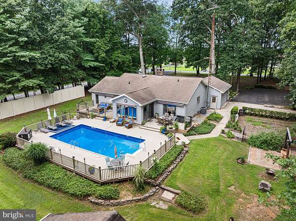 OPEN HOUSE SCHEDULED FOR SUNDAY 10/12/25 HAS BEEN CANCELLED DUE TO POTENTIAL WEATHER ALERTS. PLEASE JOIN US NEXT SATURDAY 10/18/25 FROM 11:00AMTO 1:00PM. Discover Your Dream Oasis! Welcome to this magnificent 2,042 sq. ft. home nestled on a sprawling 1.72-acre park-like setting, where tranquility meets luxury living. The 20,000-gallon in-ground saltwater pool, complete with maintenance free decking and a liner replaced in the fall of 2022, serves as the centerpiece of outdoor enjoyment. Imagine summer days spent poolside in your personal paradise! Over the past two years, this home has seen numerous upgrades that enhance its value and comfort. A brand-new septic system (2023) and well pressure tank ensure reliability and peace of mind. The attached two-car garage features a new door with epoxy flooring that is both stylish and easy to maintain. Inside, enjoy a refreshed hall bath with a new shower and flooring, fresh paint, and new lighting. New outdoor rear awnings were installed to provide generous shade over the poolside deck areas. Step inside to discover a spacious open floor plan perfect for family gatherings. The large kitchen boasts all-new appliances, a massive island, ample counter space, and plenty of cabinets to make this kitchen a culinary enthusiast's dream. The inviting living room features a pellet stove fireplace insert, while the adjacent all-season room offers seamless access to the pool and deck area, blending indoor and outdoor living effortlessly. The primary suite is a private sanctuary, complete with a cozy sitting area, a luxurious en-suite bathroom, a generous walk-in closet, and exclusive access to a serene concrete deck by the pool - an ideal spot for a hot tub! In addition to the main house, the property includes a two-story detached garage with electric and water access, perfect for a workshop or lounge area. It even has its own separate driveway! Two additional sheds provide convenient storage for lawn and pool equipment. A chicken coop is located by the detached garage..chickens can be included! This exceptional property backs onto a wonderfully wooded area, enhancing your privacy. Once overgrown, this space has been thoughtfully cleared to create a serene retreat. With plenty of room for future additions like a pole barn, the possibilities are endless. The property is conveniently located off Route 1 for easy commuting, minutes from Bayhealth hospital, and only 23 miles from Rehobeth Beach! Do not miss the opportunity to own this stunning home, designed for both relaxation and entertaining. Schedule your private tour today and experience the perfect blend of modern upgrades and natural beauty!