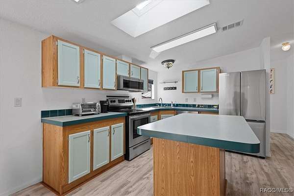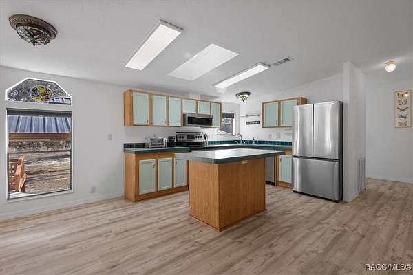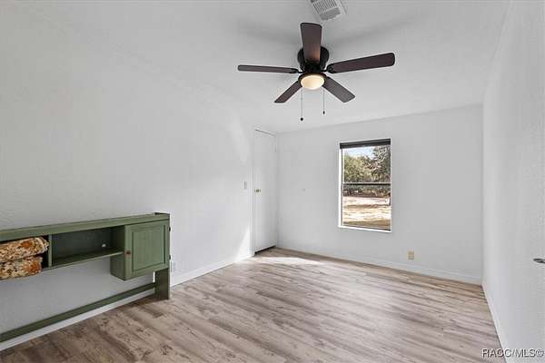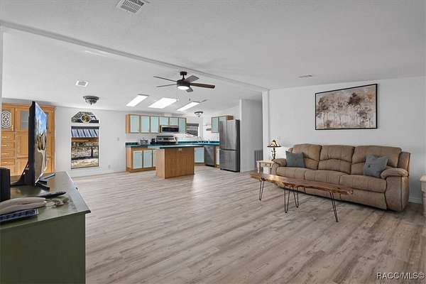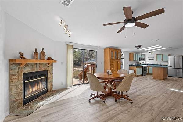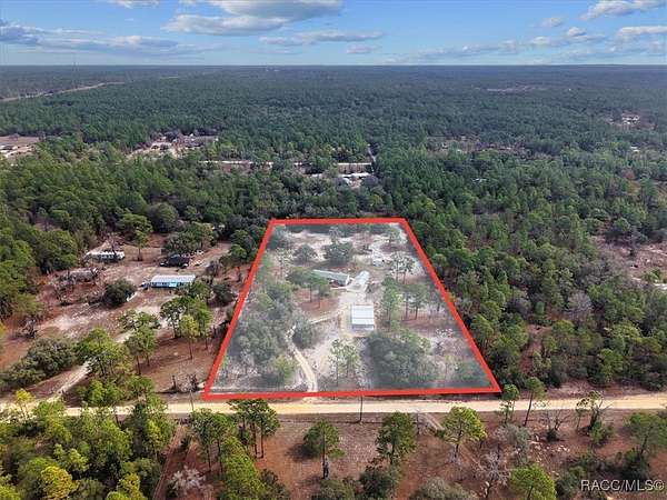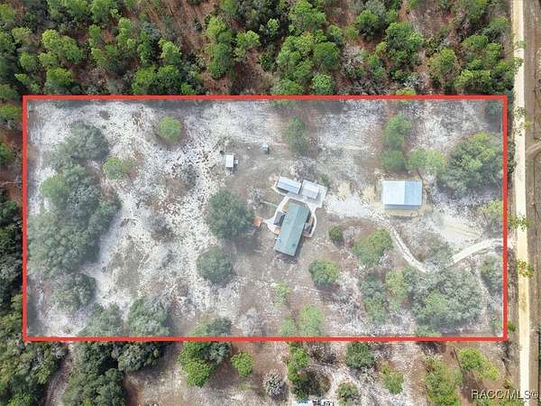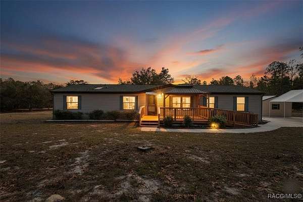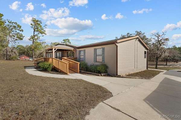 Beautifully remodeled 4-bedroom, 2-bath home situated on 5.08 fully fenced acres in the Mini Farms, offering space, privacy, and room for livestock. This non-smoking homes interior comforts are supported by a 2016 HVAC system, brand new flooring (2025), stainless steel appliances, a wood-burning fireplace and a 2019 shingle roof and skylights. Exterior improvements are a 2023 deck with new stairs and a handicap accessible ramp as well as a brand-new never used 30x50 garage/shop (2025) with 10x10 doors, great for equipment, vehicles, or workshop needs, a 30x14 shop, and a 10x16 shed. Conveniently located minutes away from local hospitals, shopping, Crystal River springs and Rainbow Springs, this property blends peaceful country living with quick access to everyday amenities. A versatile acreage property optimal for those seeking land, storage, and a quiet rural setting not far from town and the new parkway.