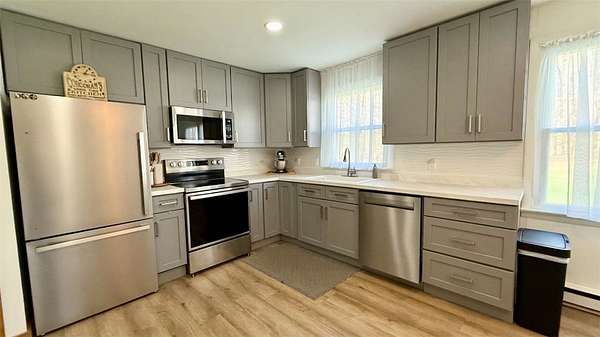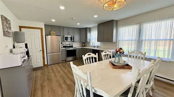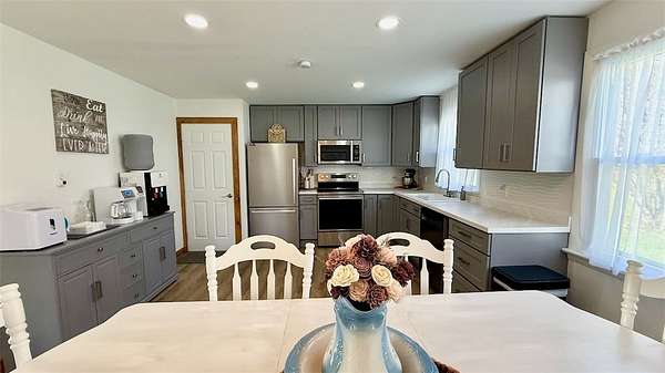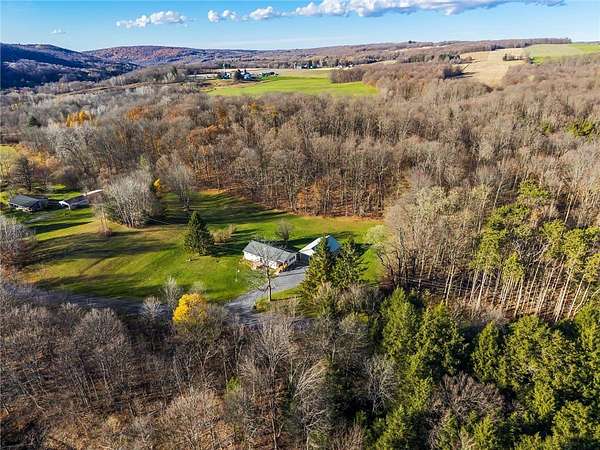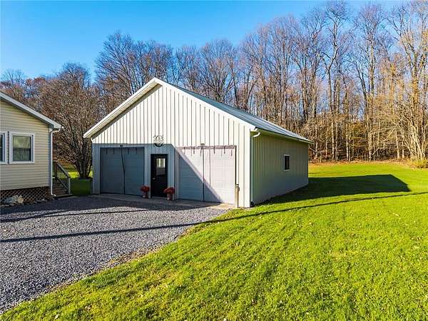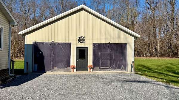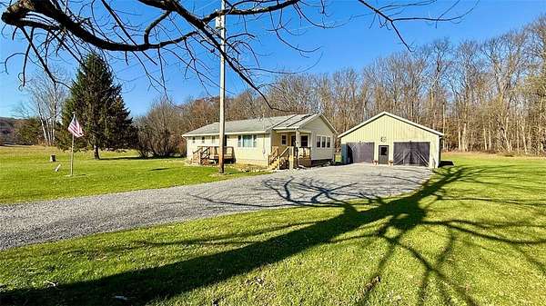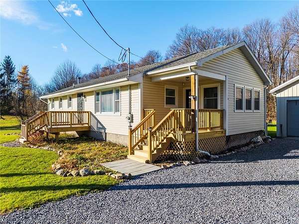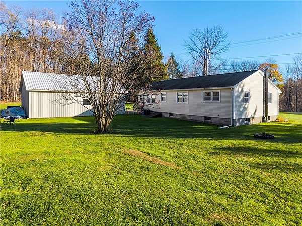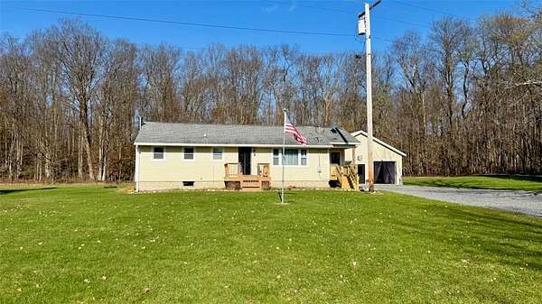 Opportunity Knocks, Sometimes When It is Needed Most. Check out thoughtfully and recently renovated ranch, nestled on just under 3 acres across two tax parcels. Here, peace and possibility come together in perfect balance. Step inside and you'll be greeted by an open-concept floor plan designed for connection and comfort. The spacious kitchen features expansive countertops, plenty of cabinets and room for a large table - ideal for gathering with friends or family. This home offers three bedrooms, one full bath, and plenty of closet space, plus a double-entry mudroom that keeps life organized. Enjoy your morning coffee on the covered front deck, surrounded by mature trees and wide-open views with no immediate neighbors. A true standout feature is the oversized four-car garage with a second-story walk-up attic, perfect for storage, hobbies, or a future workspace. The lower level includes laundry and a supplemental wood stove for cozy, efficient warmth. Located on a quiet rural road, this property offers the tranquility of country living while remaining just a short drive to Skaneateles, Auburn, Cortland, and Ithaca. When opportunity knocks... this is the kind worth answering.