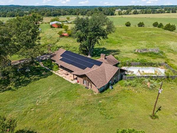 The home features spacious bedrooms, multiple living areas, and a layout that’s ready for your personal touch. Outdoors, you’ll find open pastures, storage barns, and working pens ideal for livestock. A solar panel system provides energy savings, and the property also includes a porch for relaxing and a swimming pool in need of retrofitting, offering potential for recreation.