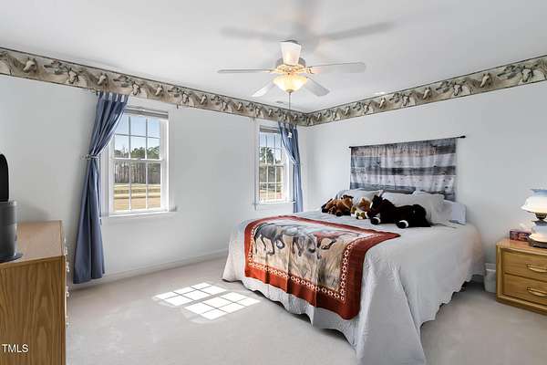 4 BR | 3 BA | 3,805 sq ft | 6+ Acres - All-Brick Colonial Estate - Wake Forest, NC. Set on 6.03 acres of prime Wake County land, this meticulously maintained all-brick colonial combines immediate move-in comfort with strong potential for future value. A wraparound porch, private gated entry, and expansive road frontage frame a home built with quality materials and thoughtful design. Inside, rich hardwood floors lead from an elegant formal dining room to a chef-inspired kitchen with central island, opening to a sunlit family room with a versatile gas or wood-burning fireplace. Enjoy panoramic pasture views from the living room and experience true convenience with a main-level ADA-accessible bedroom and bath-perfect for independent living, multi-generational comfort, or welcoming guests with ease. Upstairs features a spacious, primary suite, two additional bedrooms with full bath, an office, a laundry room with a floor drain, and a flexible bonus room perfect for media, fitness or gaming. A walk-up attic and full basement provide ample opportunities to add finished square footage, while the three-car garage with soaring ceilings appeals to car enthusiasts and hobbyists. This home is thoughtfully designed for durability and low maintenance, featuring dual HVAC systems, whole-house water filtration, and tilt/removable windows. The land is equally impressive, offering horse-friendly pastures, a four-stall barn with two-car parking, shed, metal carport, mature grapevines, portable chicken coop, and six acres of open terrain ready for gardens, a pool, or future structures. All of this comes with unbeatable convenience, minutes from top schools, shopping, dining, and direct routes to Raleigh, Knightdale, Rolesville, and Wake Forest. Don't miss this rare opportunity with turnkey family comfort and serious investment potential-6404 Pulley Town Road truly has it all!