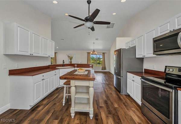 Priced to sell! You won't be disappointed! Welcome to peaceful country living at its best! Tucked away on 2.5 fully fenced acres, this meticulously cared-for 3-bedroom, 2-bath home combines peaceful rural living, comfort, functionality and smart design-zoned agricultural, NO HOA, and NOT in a flood zone! Whether you're dreaming of a mini farm, a private homestead, or simply extra space to roam, this property checks all the boxes and offers endless possibilities! Step through the inviting covered front porch into a warm and welcoming interior. The well-appointed kitchen is equipped with a center island, vaulted ceilings, recessed lighting, stainless steel appliances, breakfast bar, oversized walk-in pantry, and seamless access to the expansive back deck-perfect for outdoor entertaining, sunset dinners, or enjoying your morning coffee while surrounded by nature. The home features a spacious open-concept living and dining area-perfect for entertaining, family gatherings, or simply unwinding after a long day. A split floor plan ensures privacy, with the owner's suite offering a walk-in closet with custom built-ins, ensuite with jetted tub, separate shower, and dual vanities. Two additional bedrooms and a full guest bath are located on the opposite side of the home, ideal for family, guests, or flexible living arrangements. Additional highlights include an oversized mudroom with built-in cabinetry, sink, shelving, and washer & dryer. Equipped with dual-zone A/C for optimal comfort and efficient climate control. A massive 1,459 sq ft detached garage-perfect for tools, hobbies, vehicles, or workshop use. Ample space to bring your horses, goats, chickens, ATV's, or start the garden of your dreams. All this while being just minutes from shopping, dining, Punta Gorda Airport, and the beautiful open waters of Charlotte Harbor-perfect for boating, kayaking, and fishing. This is a rare opportunity to own a private retreat with space, charm, and freedom. Schedule your showing today and see what makes this home so special!