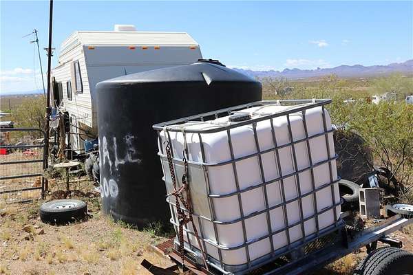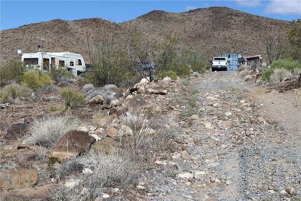 Spectacular views of Golden Valley from this 10 acre property located in Golden Valley Arizona. This property is set up with the possibilty of multiple building sites. With mountains as the back drop hike and explore to your hearts content. Property has a septic system already installed and power is on property. The installed septic system is a larger system. There are hookups for another RV if friends should arrive. This is a water haul property and the filing spot is only 4 miles away on paved roads. Convenient to Bullhead City/Laughlin NV. There is a market close by. Desert and water sports loom close by. If you are looking for that away but not away feel this is defiantly a property to consider. RV on property does convey, Sea container does convey with property. Small water haul tank conveys also. Please do not trespass on property respect the gate open or closed .