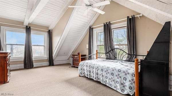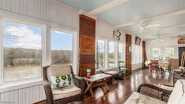 Escape to your own private riverfront retreat with this one-of-a-kind property offering both residential comfort and Bed & Breakfast potential. Featuring 5 bedrooms and 4.5 bathrooms, each spacious bedroom includes its own private bath, making it ideal for hosting guests or multi-generational living. The main level showcases beautiful hardwood floors and welcoming living spaces, all enhanced by the home's stunning setting along the Muskingum River. Enjoy panoramic views overlooking Lock 11 at Ellis Dam from the main floor front porch and second-floor sleeping porches. A whole-house generator adds peace of mind year-round. Set on 4.35 wooded acres, the property offers privacy, abundant wildlife, and direct river access complete with a private beach. The 24x32, 4-car garage, built in 2016, features a concrete floor and 220V electric service, along with an additional concrete pad for extra parking. The attic space above the garage provides excellent storage or the potential for a future apartment or guest suite. Recent updates include a new sewer line to the septic system (2022), hot water heater (2022), well pump (2022), and A/C unit (2022). Located well above the flood plain, this property does not require flood insurance. A rare opportunity to own a scenic, versatile waterfront property with endless possibilities.