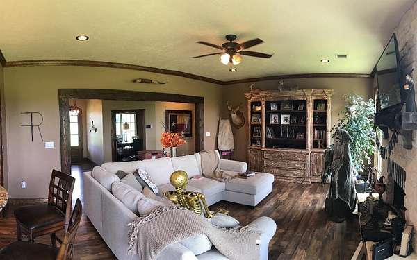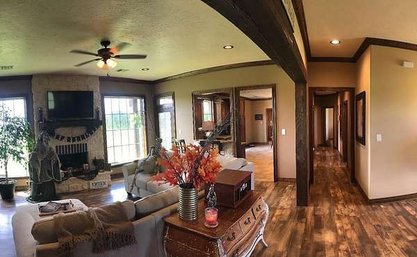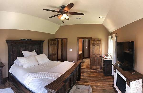 Longing for the quiet, peaceful life? Come check out this amazing 3 bedroom, 2.5 bath and 2 car garage custom home sitting on approximately 96 acres of pristine, manicured pastureland in the piney woods of East Texas. This home features an open concept living/kitchen area with a study off of the main/front door entrance. Gorgeous hardwood and ceramic tile throughout. All new kitchen appliances and a farmhouse style kitchen sink. Finished out, heated & cooled attic space. The property has a 40 x 40 insulated shop with a 30 x 40 lean to. New 36 x 36 barn with 3 stalls, wash bay, tack room and feed room. 2 ponds, 2 creeks (Bear Creek and an additional creek) run through the property. The property is barbed wire fenced with piped fence around the perimeter of the house and a cross fenced area. Several acres along the back of the property are wooded. This tract backs up to a large, managed timber tract (possible leasing options) making it ideal for hunting.