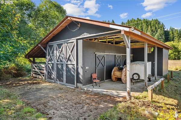 Escape to your own private retreat just 45 minutes from Hillsboro and 1 hour from Portland. This historic farmstead, built by the Johns family in the 1940s and owned by only one other family since, blends timeless charm with thoughtful updates across 14 acres of riverfront land. The cozy farmhouse offers 1069 sqft of living space with original old-growth timber floors, semi-remodeled kitchen and bathroom, and modern upgrades including new roof, septic, windows, and sliding door (2016). The foundation was leveled and stabilized in 2017, and a nearly unused propane forced-air furnace is in place (tank needed). Additional improvements include new water heater, new washer/dryer, and never-connected dishwasher, giving the next owner a strong head start. The beauty of the land cannot be overstated! Over 2,000 feet of Nehalem River frontage, with secluded private beach and multiple walk-up points means you can float the whole property! 7.5 acres of usable pasture/hay field-ideal for livestock, horses, or agriculture. 1000 sq. ft. horse barn with multiple spigots, Edison bulb breaker, chicken coop, and flexible use space for storage, animals, or workshop. Multiple raised bed gardens plus fire pits for year-round gatherings. Covered back patio overlooking peaceful country views. With fast internet, a private well, and just 5 miles to Vernonia, this property offers the perfect balance of convenience and seclusion. Whether you're seeking a turn-key rural homestead, a weekend retreat, or a place to build your dream home while living in the farmhouse, this rare property has the history, setting, and potential to make it your own.
