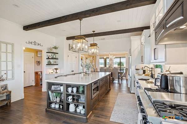 This stunningly renovated 3-bed, 2-bath home exudes modern luxury with a hint of Hill Country allure. Situated on nearly 5 acres, this property offers the ideal mix of seclusion, space, and convenience. Inside, you'll find 12-foot ceilings in the kitchen and living area, creating a spacious and inviting atmosphere. With travertine floors, quartz countertops, and top-of-the-line Viking appliances, the kitchen is a chef's dream. Upgraded with elegance and functionality in mind, every detail shines. Embrace the tranquility of country living while still being near town, schools, and Lake Belton. Ample outdoor space allows for relaxation, entertainment, and future possibilities. Don't miss out on this ready-to-enjoy retreat in Belton!