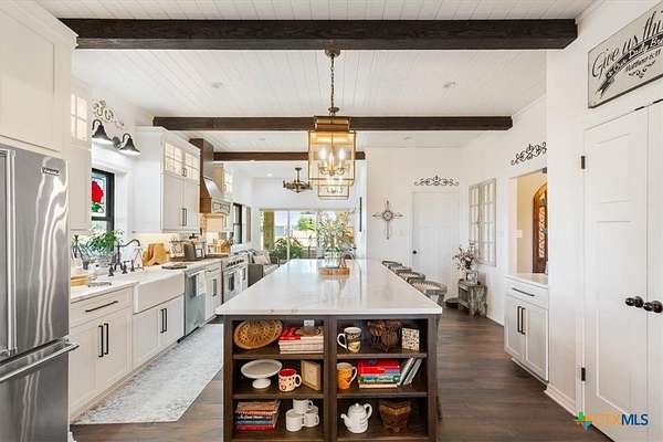 This stunningly renovated 3-bed, 2-bath home exudes modern luxury with a hint of Hill Country allure. Situated on nearly 5 acres, this property offers the ideal mix of seclusion, space, and convenience. Inside, you'll find 12-foot ceilings in the kitchen and living area, creating a spacious and inviting atmosphere. With travertine floors, quartz countertops, and top-of-the-line Viking appliances, the kitchen is a chef's dream. Upgraded with elegance and functionality in mind, every detail shines. Embrace the tranquility of country living while still being near town, schools, and Lake Belton. Ample outdoor space allows for relaxation, entertainment, and future possibilities. Don't miss out on this ready-to-enjoy retreat in Belton!