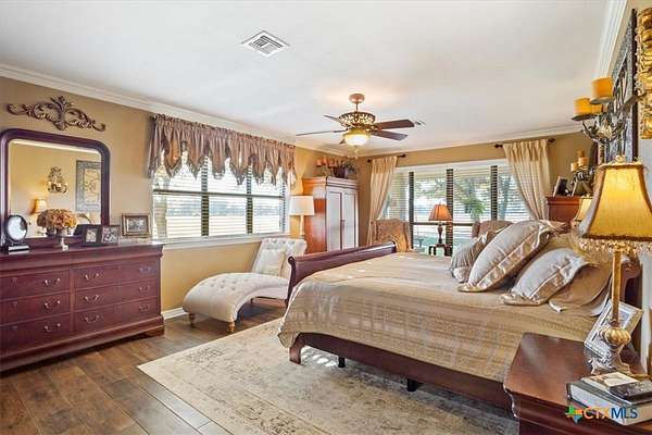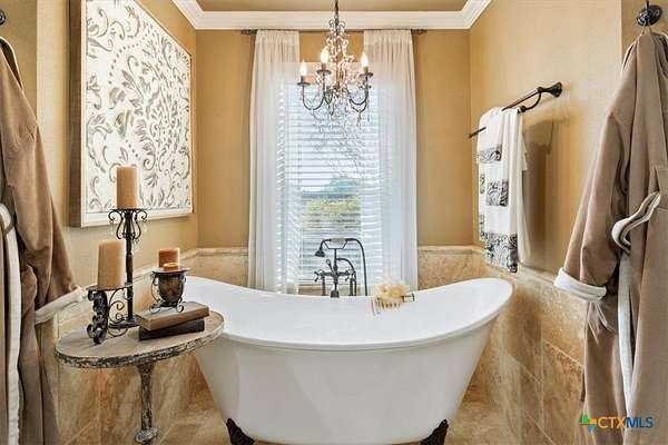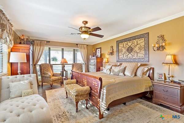 - All Bedrooms Down, Bookcases, Breakfast Bar, Ceiling Fans, Crown Molding, Dining Area, Double Vanity, Eat In Kitchen, Entrance Foyer, Garden Tub Roman Tub, Granite Counters, Kitchen Dining Combo, Kitchen Island, Main Level Primary, Primary Downstairs, Separate Formal Dining Room, Separate Shower, Walk In Closets